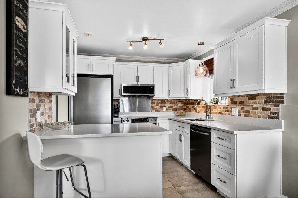 VISITE LIBRE SAMEDI 12:00pm-14:00pm Condo récemment rénové, avec deux places de stationnements! Situé au coeur de Vaudreui. Décoré avec goût et style. Concept ouvert, grande fenestration très ensoleillé. Condo clé en main prêt à emménager! Concept ouvert, ensoleillée avec grandes fenêtres et très ensoleillé. Nouveaux planchers de bois franc. Spacieuse cuisine rénovée avec nouvelles armoires en bois, comptoirs en quartz et d'un grand îlot offrant des places supplémentaires, idéale pour recevoir amis et famille. Deux chambres spacieuses avec un grand walk-in dans la chambre principale. Terrasse privée donnant sur une magnifique rocaille. À quelques pas du centre commercial. À quelques pas de l'arrêt de bus pour Fairview, piste cyclable, la gare et le centre sportif sont à quelques minutes seulement. Accès facile aux autoroutes 40, 20 et 30, et à quelques minutes en voiture du nouvel hôpital. Une visite vous convaincra! ***Rénovation récente*** 2021 Nouvelle thermopompe murale 2025 Nouvelle cuisine avec comptoir en quartz, armoires en bois, nouvel évier avec robinet, back splash en pierre et brique, back splash en acier inoxydable au-dessus du poêle, nouveau plancher en céramique 2025 Nouveau plancher en céramique et armoires dans la salle de bain 2025 Nouveaux planchers de bois dans tout le condo 2025 Nouveau plancher en céramique dans le storage 2025 Nouveau mur en briques et pierre dans le salon