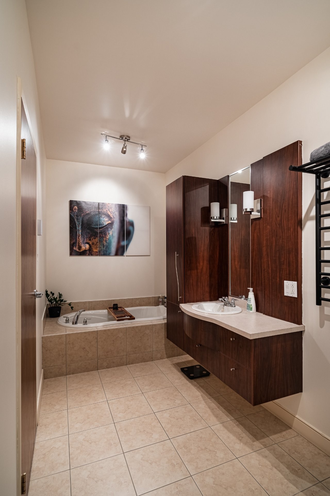 Incroyable condo de coin très lumineux avec deux chambres, grande salle de bain, salle de lavage, garage et rangement. Situé dans un quartier résidentiel de HoMa proche de garderies, parcs, boulangerie, cafés et épicerie et à quelques secondes de la piste cyclable menant au centre-ville. Condo très bien entretenu et au goût du jour incluant des comptoirs en quartz, climatisation, et un walk-in dans la chambre des maîtres. Tout se fait à pied, idéal pour famille ou gens actifs. L'immeuble est doté d'un ascenseur, et situé dans une copropriété bien gérée au niveau de son entretien, de ses finances et déjà conforme à la nouvelle loi16. Condo de coin offrant énormément de fenestration (incluant des stores électriques sur mesure) et donc une meilleure luminosité naturelle par rapport aux autres unités de l'immeuble, ce qui rend l'espace plus lumineux et agréable à vivre. Le balcon privé et la terrasse commune sur le toit ajoutent une belle dimension extérieure, offrant une vue dégagée et un espace privé à l'air libre. Video de la propriété est disponible sur demande.