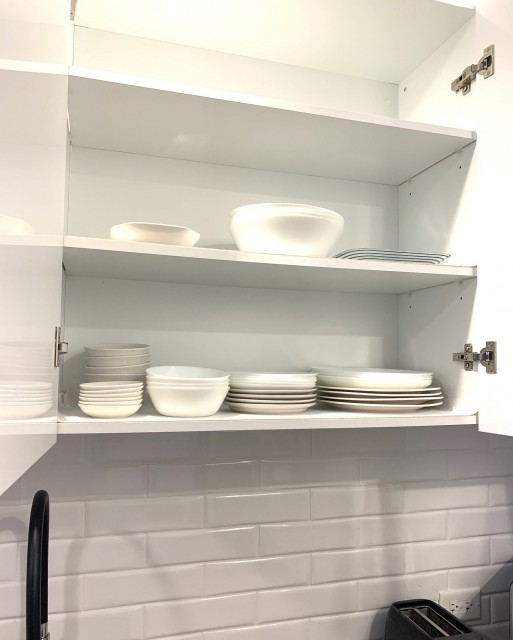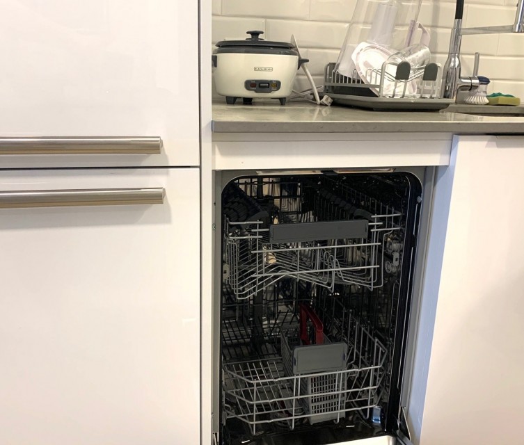 -canapé, un lit (sans matelas) -réfrigérateur, cuisinière, lave-vaisselle, sèche-linge, micro-ondes, ustensiles de cuisine, -2 chaises hautes et un meuble TV