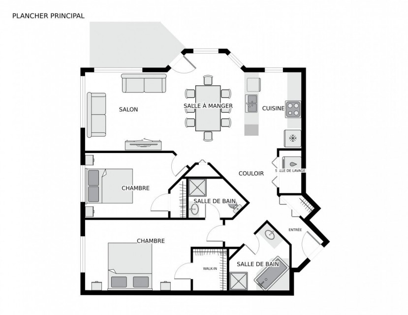 | Salle de bains/salle d'eau | Attenante à la chambre principale |