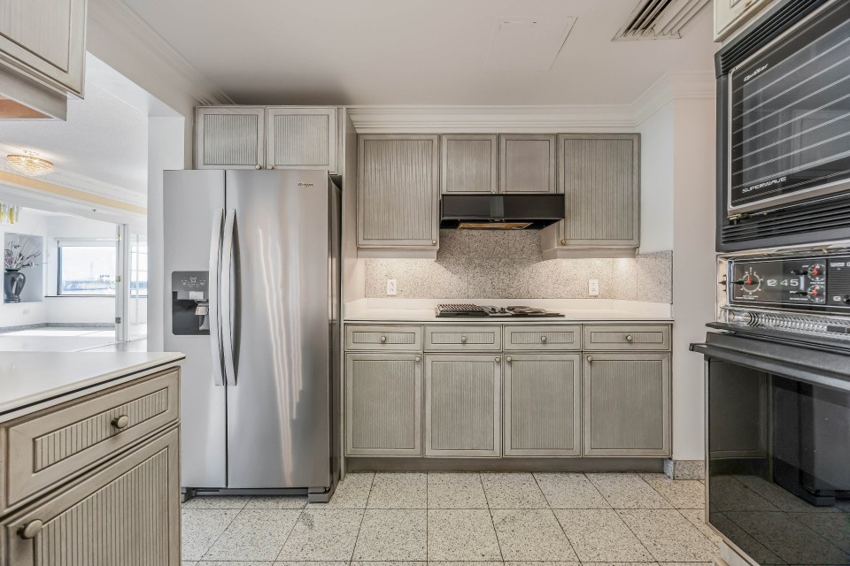 Réfrigérateur, plaque de cuisson, four encastré, lave-vaisselle, laveuse et sécheuse, aspirateur central et accessoires, tous les ameublements encastrés, tous les luminaires et toutes les toiles des fenêtres