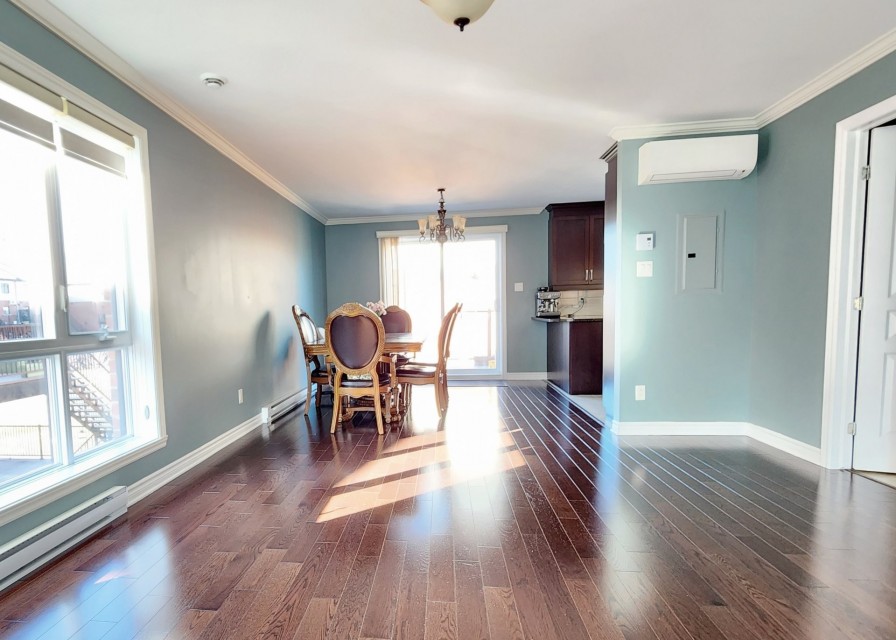 Condo baigné de lumière avec 4 chambres, 2 salles de bain et un magnifique salon sur deux étages. La chambre principale dispose d'un dressing et d'une salle de bain attenante complète pour un confort accru. L'immense terrasse donnant sur la cour commune crée un espace extérieur enchanteur. Le condo comprend un garage privé offrant suffisamment d'espace de rangement. Situé dans un quartier calme et familial de LaSalle. Vente sans garantie légale de qualité, aux risques et périls de l'acheteur. Bien entretenu, rénovations au fil des ans: 2012: Revêtement du rez-de-chaussée entièrement rénové avec un plancher d'ingénierie et un escalier assorti. 2012: Revêtement du deuxième étage entièrement rénové avec un plancher de bois massif de couleur assortie. 2012: Armoires de cuisine entièrement rénovées avec un comptoir en marbre extra-large. 2012: Salle de bain attenante et salle d'eau du rez-de-chaussée entièrement rénovées avec des carreaux muraux classiques. 2016: Installation d'un nouveau climatiseur multizone sans conduit Daikin. Garantie légale jusqu'en juin 2026. 2023: Installation d'un deuxième ouvre-porte de garage. 2025: Calfeutrage extérieur entièrement refait. À proximité du parc Angrignon, d'un centre commercial, d'une station de métro, du Cégep André-Laurendeau, de l'école primaire de l'Orée-du-Parc, de la nouvelle école secondaire et du centre aquatique public. À distance de marche de tous les services. Accès facile à l'autoroute, à 10minutes du centre-ville et de l'université. Un quartier résidentiel très demandé, à voir absolument !