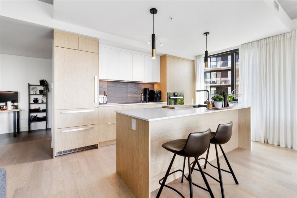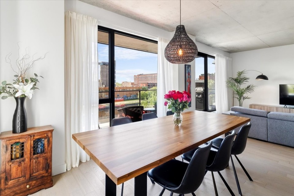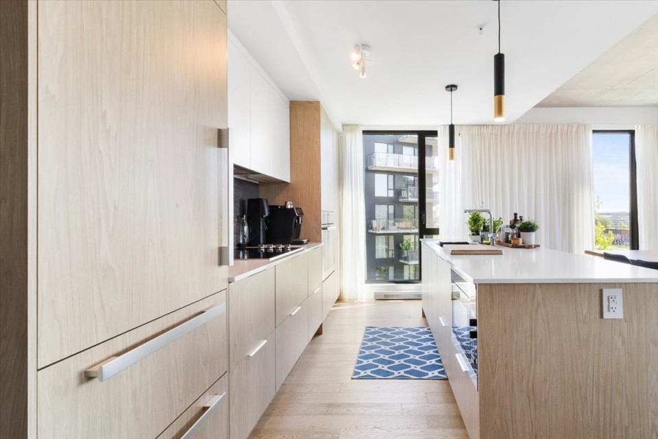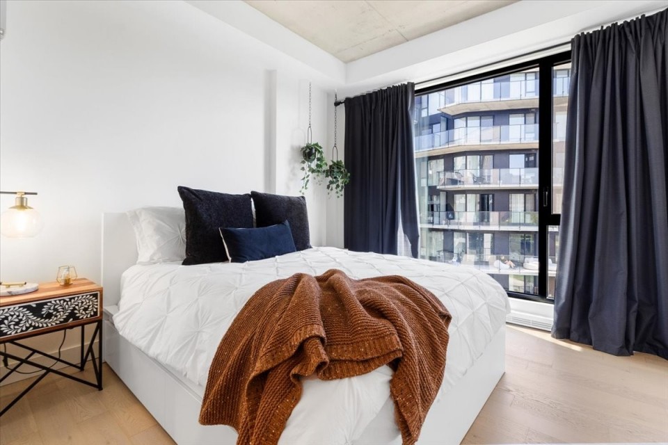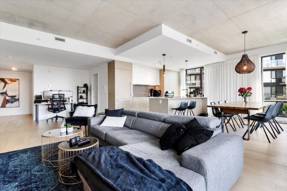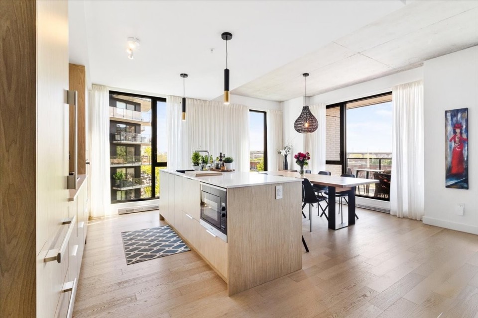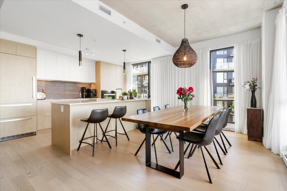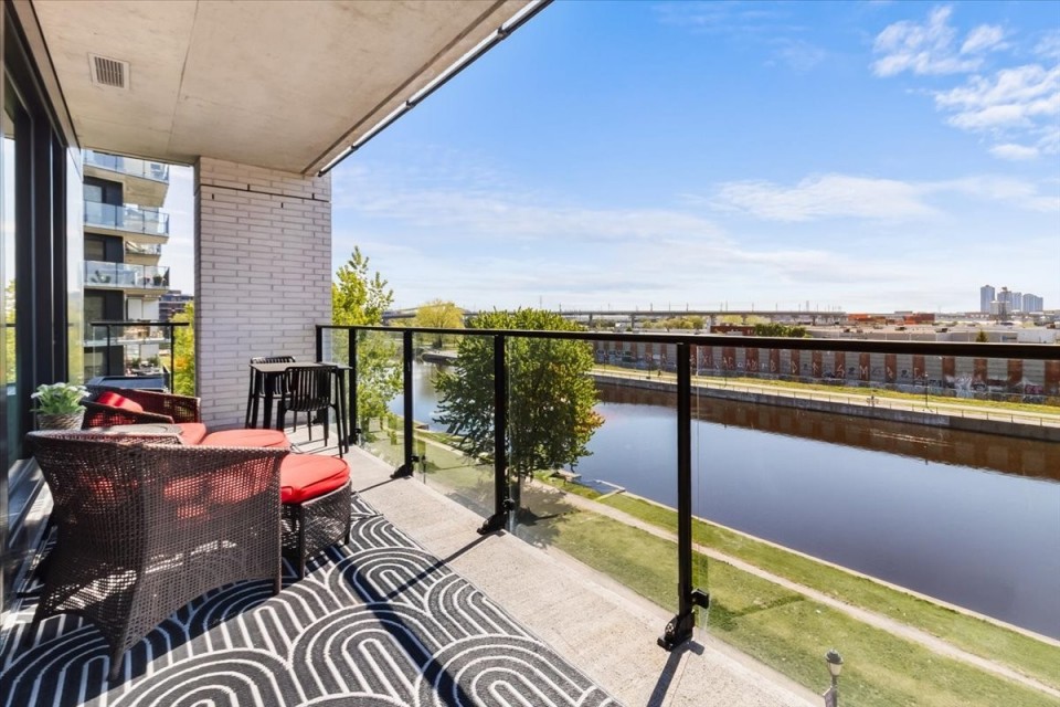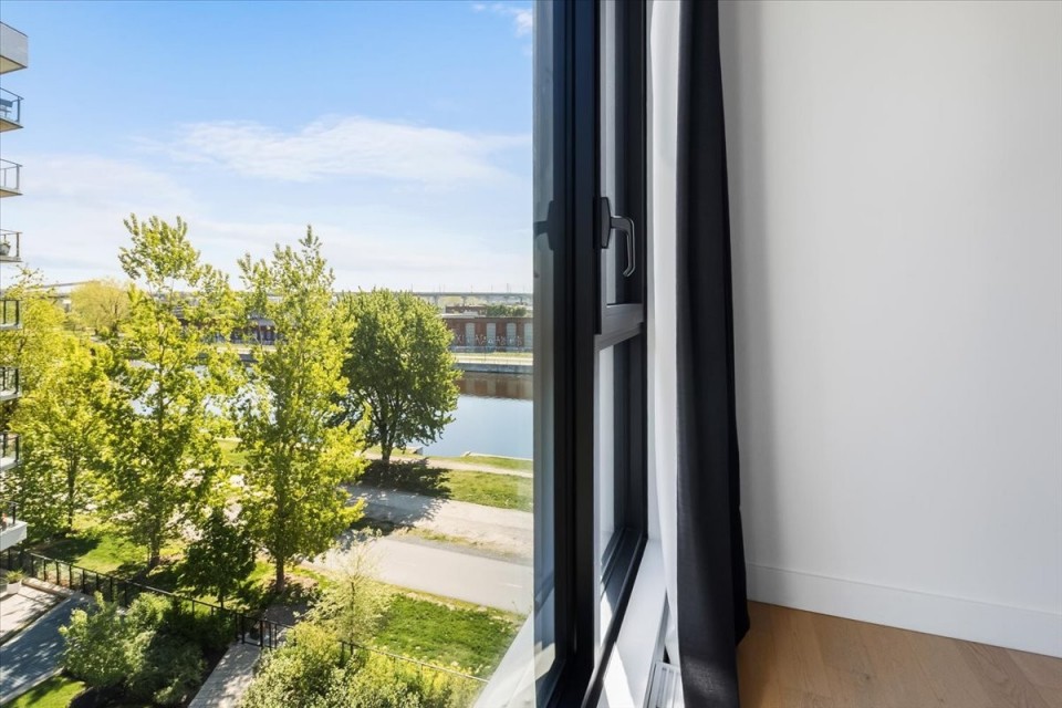 Belle condo face à l'eau dans le fabuleux projet Noca à Griffintown! C'est un condo de coin spectaculaire, très ensoleillé, au 5e étage, avec 2 chambres et 2 salles de bain. Le salon, salle à manger et cuisine sont à aire ouverte, amples et généreux. Le condo dispose d'un grand balcon offrant une vue ininterrompue et incroyable sur le canal dans 3 directions. Chaque chambre a également une vue sur l'eau. Voir Addenda pour informations complètes. Le condo est équipé d'appareils électroménagers de marque Miele tels qu'une grande plaque de cuisson, un four encastré, un micro-ondes, un réfrigérateur et un lave-vaisselle, ces 2 derniers étant recouverts de finitions d'armoires pour se fondre dans l'arrière-plan et créer un look épuré. Inclus sont également un casier et une place de stationnement avec crochet à vélo sur le mur arrière. Le projet NOCA a les magnifiques espaces communs suivants dont vous pouvez profiter: Sur le toit du 9e étage, vous trouverez une terrasse expansive avec la piscine, le barbecue, les espaces à manger et les coins détente avec une vue imprenable, prêts à être appréciés. Aux niveaux inférieurs se trouvent des zones de travail contemporaines, un très grand espace de divertissement et de fête, une cuisine, une salle de conférence, une salle de sport bien équipée, ainsi qu'une salle multifonctionnelle conçue pour être adaptable comme terrain de basket / badminton, arène de hockey-balle ou studio yoga & danse. À l'extérieur, sur le terrain, vous trouverez non seulement un jardin privé de 16 000 pieds carrés avec des bancs et des coins de repos, mais aussi un parc public pour enfants, un espace vert protégé dédié à la culture de plantes indigènes, et bien sûr le vaste espace vert et piste cyclable longeant le Canal Lachine, le tout offrant aux résidents de Noca un espace de vie sain et harmonieux malgré sa localisation urbaine. En plus de tout cela, le projet NOCA offre également des équipements extérieurs en libre-service, à la disposition de ses résidents, dont 10 vélos et 4 kayaks à emprunter et à apprécier. Venez voir ce magnifique condo maintenant, afin que vous puissiez faire ce bijou le vôtre, et commencer à profiter de toutes les magnifiques commodités qu'offre cette propriété.
