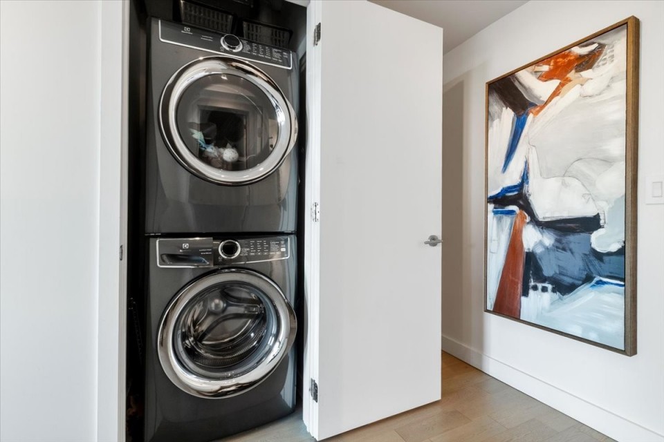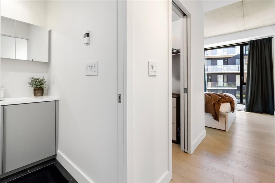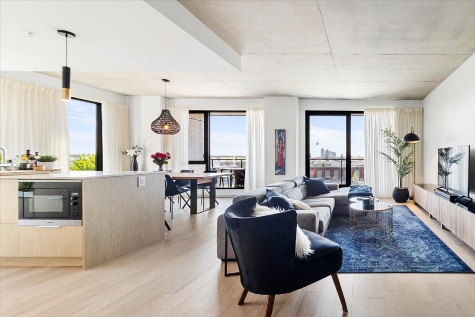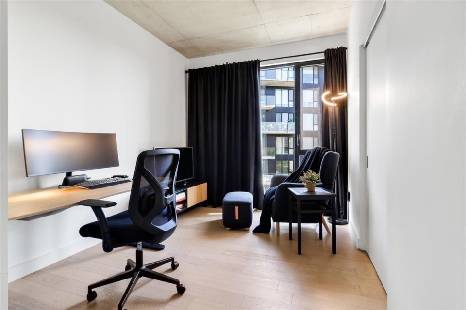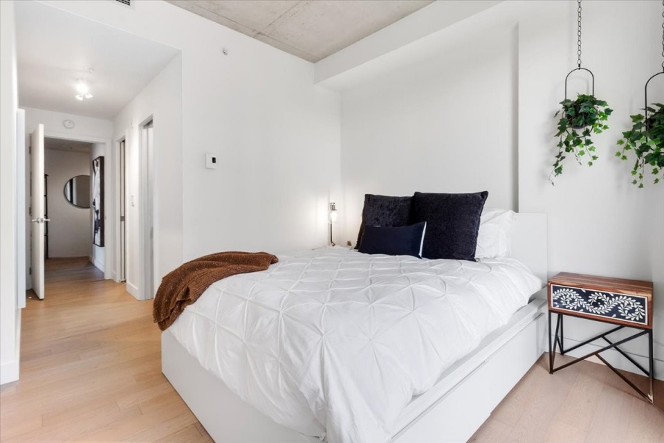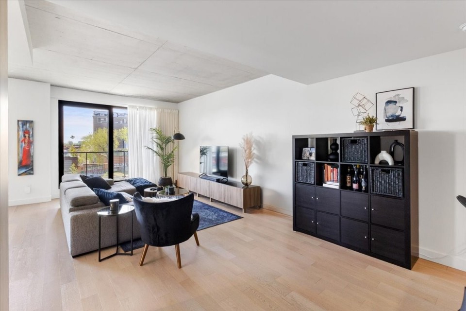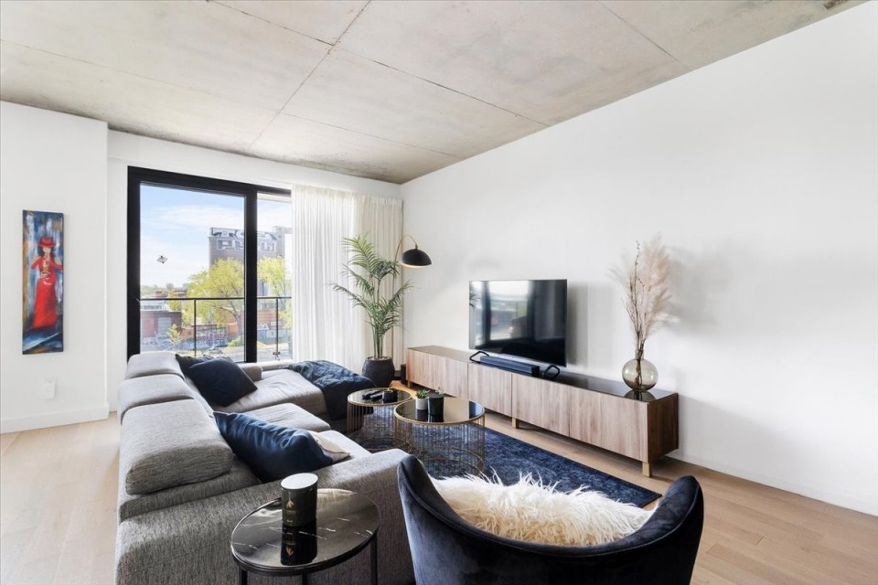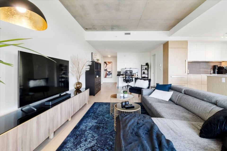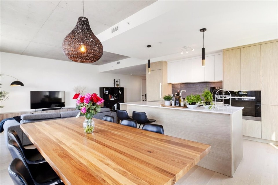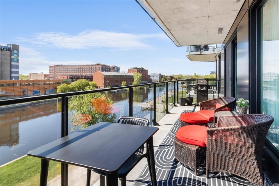 Belle condo face à l'eau dans le fabuleux projet Noca à Griffintown! C'est un condo de coin spectaculaire, très ensoleillé, au 5e étage, avec 2 chambres et 2 salles de bain. Le salon, salle à manger et cuisine sont à aire ouverte, amples et généreux. Le condo dispose d'un grand balcon offrant une vue ininterrompue et incroyable sur le canal dans 3 directions. Chaque chambre a également une vue sur l'eau. Voir Addenda pour informations complètes. Le condo est équipé d'appareils électroménagers de marque Miele tels qu'une grande plaque de cuisson, un four encastré, un micro-ondes, un réfrigérateur et un lave-vaisselle, ces 2 derniers étant recouverts de finitions d'armoires pour se fondre dans l'arrière-plan et créer un look épuré. Inclus sont également un casier et une place de stationnement avec crochet à vélo sur le mur arrière. Le projet NOCA a les magnifiques espaces communs suivants dont vous pouvez profiter: Sur le toit du 9e étage, vous trouverez une terrasse expansive avec la piscine, le barbecue, les espaces à manger et les coins détente avec une vue imprenable, prêts à être appréciés. Aux niveaux inférieurs se trouvent des zones de travail contemporaines, un très grand espace de divertissement et de fête, une cuisine, une salle de conférence, une salle de sport bien équipée, ainsi qu'une salle multifonctionnelle conçue pour être adaptable comme terrain de basket / badminton, arène de hockey-balle ou studio yoga & danse. À l'extérieur, sur le terrain, vous trouverez non seulement un jardin privé de 16 000 pieds carrés avec des bancs et des coins de repos, mais aussi un parc public pour enfants, un espace vert protégé dédié à la culture de plantes indigènes, et bien sûr le vaste espace vert et piste cyclable longeant le Canal Lachine, le tout offrant aux résidents de Noca un espace de vie sain et harmonieux malgré sa localisation urbaine. En plus de tout cela, le projet NOCA offre également des équipements extérieurs en libre-service, à la disposition de ses résidents, dont 10 vélos et 4 kayaks à emprunter et à apprécier. Venez voir ce magnifique condo maintenant, afin que vous puissiez faire ce bijou le vôtre, et commencer à profiter de toutes les magnifiques commodités qu'offre cette propriété.