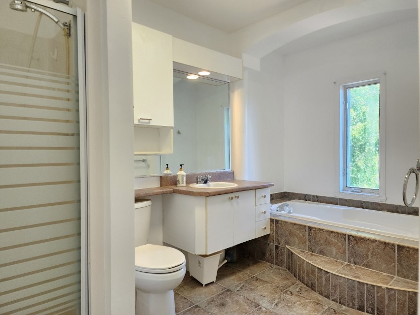 Charmante maison jumelée ensoleillée située dans un quartier calme, familial et recherché. Elle offre 3 chambres et une salle de bain, 2 salles de bain et une salle familiale lumineuse, 2 voies pour conducteurs; un sous-sol aménagé avec une salle familiale lumineuse, une salle de bain complète, une chambre (sans fenêtre) et une grande buanderie. Accès facile à l'autoroute et aux transports en commun menant au REM. À quelques minutes à pied de Costco, de parcs, etc. N'hésitez pas à nous rendre visite! - Réservoir d'eau chaude remplacé en 2023; - Thermopompe de climatisation installée en 2023; - Nouveau lavabo dans la salle de bain du sous-sol changé en 2025; - Tapis au deuxième étage et dans l'escalier menant au sous-sol remplacé en 2025. Il n'y a pas de frais de copropriété,976,55 $ est pour Frais d'assurance bâtiments , Frais registre des entreprises , Frais bancaires, Fond de prévisions, Frais évaluation coût de reconstruction Groupe LPCA.