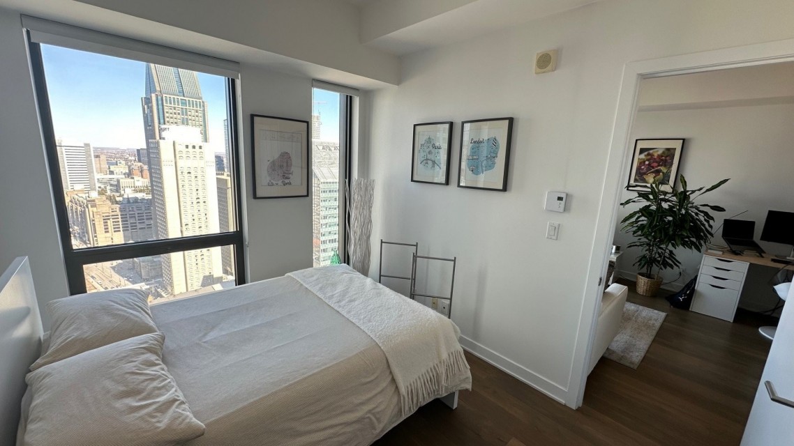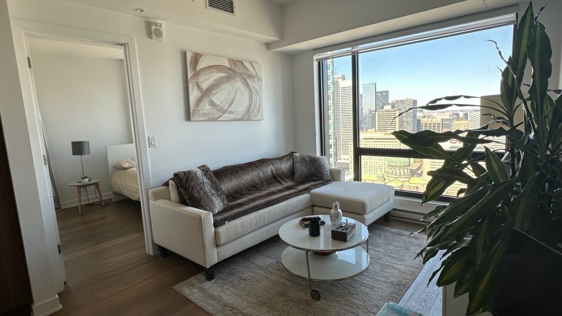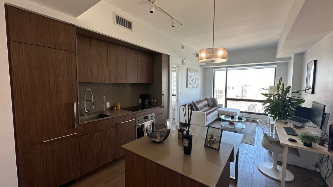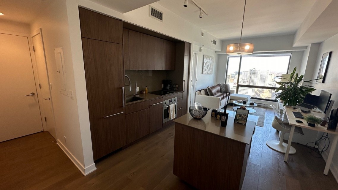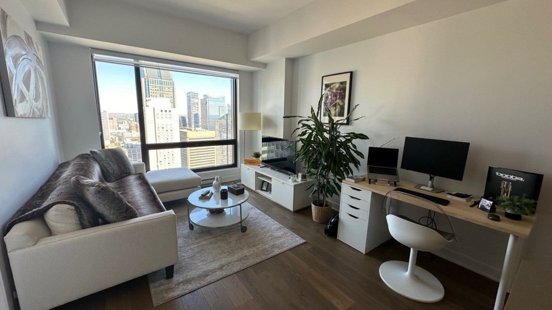 Condo de luxe dans la prestigieuse tour des Canadiens phase 1 au 37e étage avec luminosité naturelle abondante et une vue dégagée à vous couper le souffle. Une chambre fermée avec walk-in, entièrement meublé (laveuse-sécheuse dans l'unité) et équipé avec qualité, aire communes élaborées et complètes (piscine, sauna, bain vapeur, terrasse, BBQs & cuisines, gym, salles de jeux, loges/salons) il ne manque que vos effets personnels. Au coeur du centre-ville, près de toutes commodités, Walk score 100%, transit score 97% à 1 minute de marche de la gare de train et métro Lucien Lallier, Épicerie (provigo), restos et plus. Occupation flexible. Occupation flexible entre le 1er juin au 1er septembre 2026