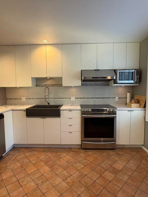 Réfrigérateur, cuisinière, lave-vaisselle, hotte de cuisinière, laveuse/sécheuse, climatiseur, luminaires, accessoires du Système d'alarme, stores et pôle à rideaux, Étagères dans le garage.