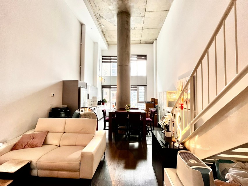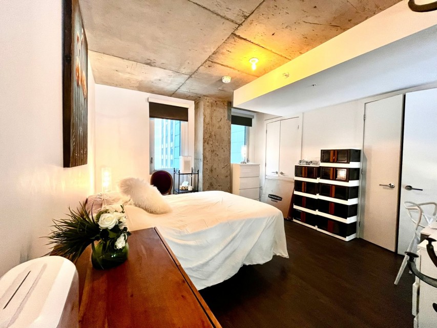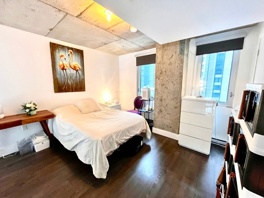 Le Peterson Condo Loft ! Ce condo spectaculaire et aéré offre des plafonds de 18 pieds et un très grand mur de fenêtres laissant entrer beaucoup de soleil. Louez ce condo spacieux et soyez branché au Quartier Financier, l'Université McGill, les transports en commun et le fameux Quartier des Spectacles de Montréal! Disponible le 1er juin 2026. Voici un grand LOFT sur 2 étages offrant une chambre à coucher au mezzanine et une grande surface ouverte au niveau principal comprenant salon, salle à manger, cuisine et buanderie équipée. Le plafond est de 18 pieds avec de la fenestration du sol au plafond. La cuisine est complètement équipée avec les électros modernes en acier inoxydable, comptoir en quartz et un grand évier inoxydable. Le luxueux bâtiment Le Peterson vous offre la sécurité 24/7, 3 ascenseurs rapides, une suite d'invités pour vos visiteurs et 5 espaces communs pour vous détendre: Au rez-de-chaussée se trouve: 1) un salon de piano calme, 2) une salle de jeux/fêtes avec une télévision grand écran, table de billard, 2 tables de babyfut, machines à pop-corn et Nespresso, ainsi qu'une cuisine de présentation pour vos événements, et 3) salle de vélo. 3) Au 28é étage se trouve 4) l'incroyable skydeck ouvert, comprenant BBQ, mur d'escalade et une zone « relax » pour prendre du soleil et jouir de la vue formidable sur la ville, et 5) le gym avec une fenestration du sol au plafond, faisant tout le coin sud-est, et offrant une belle vue continue sur le Quartier de Spectacles et la fleuve St Laurent! À noter: Les animaux, le cannabis et la sous-location à court terme, ou Air BnB ne sont pas permis dans l'appartement. Le locataire doit prendre une assurance avec responsabilité civile avant d'emménager, et payer les frais de déménagement de l'immeuble.