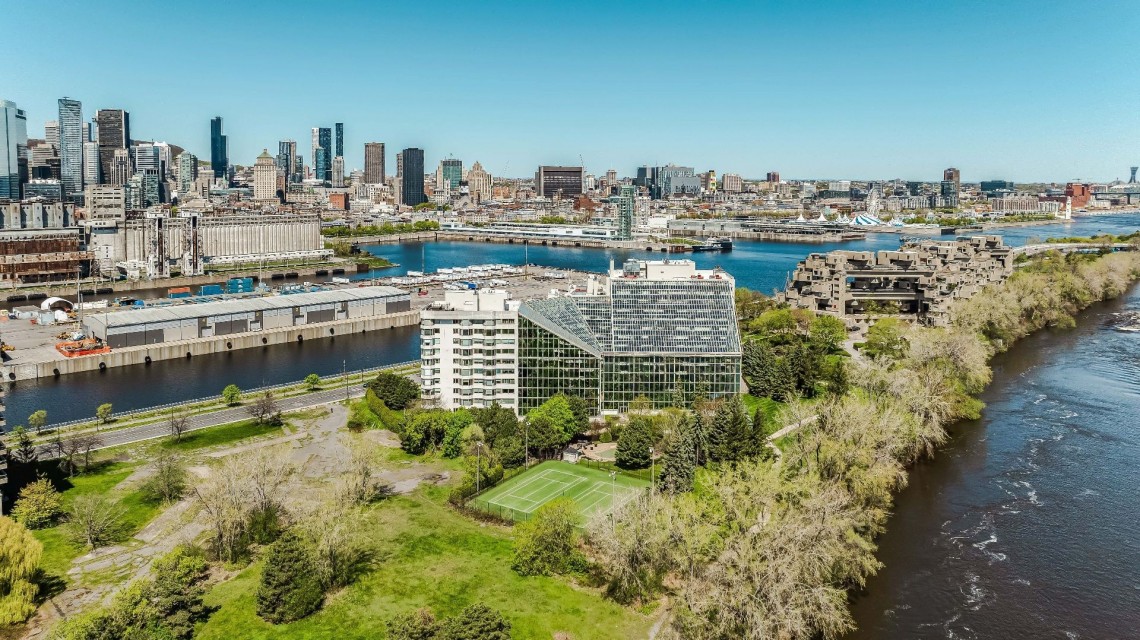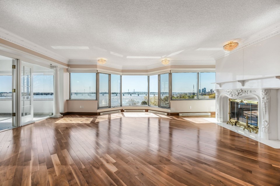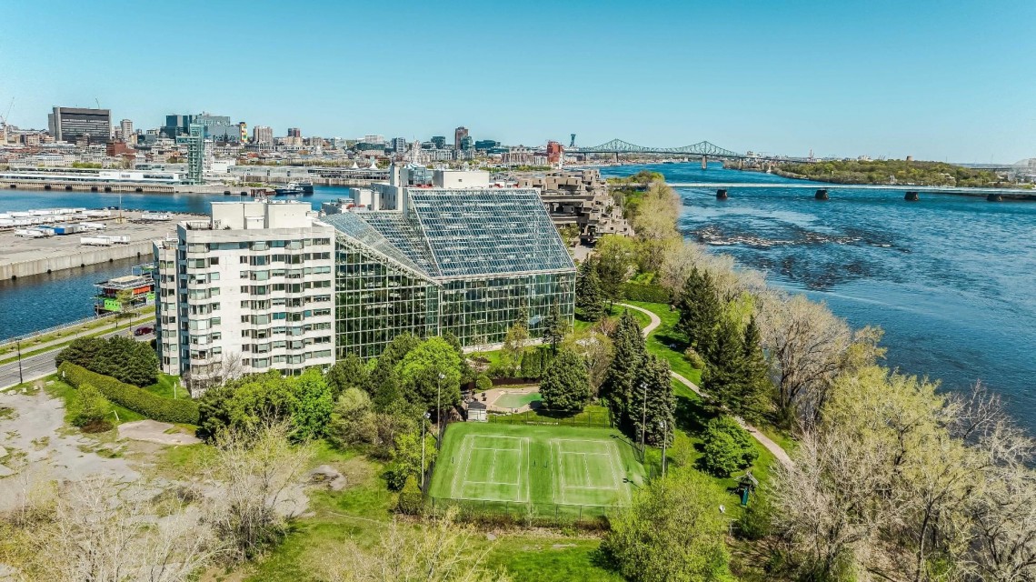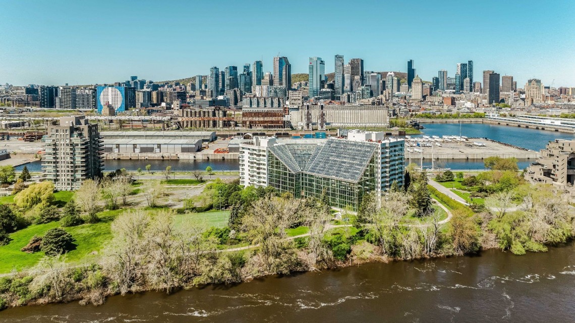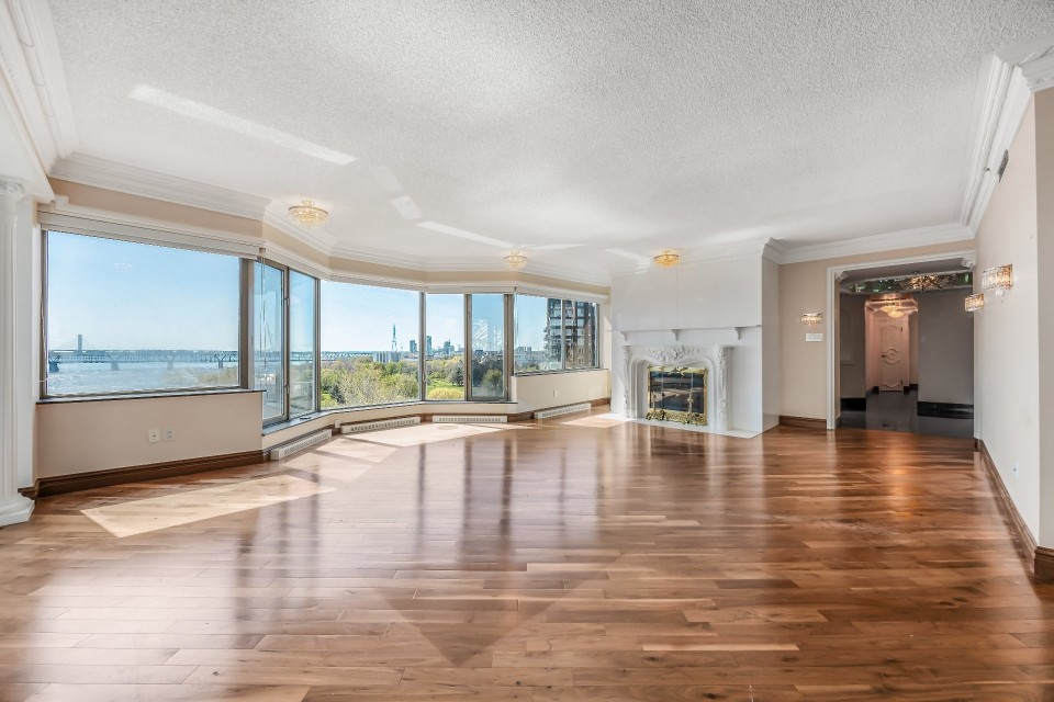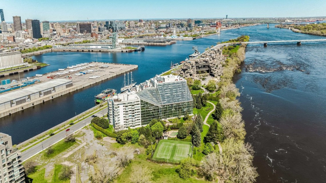 CORNER UNIT with a rare and sought-after orientation at Tropiques Nord! Stunning cross-layout unit of 2,428 sq. ft. offering 3 bedrooms, 2 bathrooms, and 1 powder room. Spacious and open living area with abundant windows and access to a +360 sq. ft. terrace located in the indoor tropical atrium. Exceptional panoramic views of the river, downtown, Old Port, and Champlain Bridge. 2 garages, 1 storage space, 1 wine cellar. Distinctive amenities include 2 pools, spa, sauna, squash, tennis, meeting room, and riverside garden. Just 5 minutes from downtown and a must-see! CORNER and CROSS-UNIT with the MOST DESIRABLE ORIENTATION at Tropiques Nord! A TRUE OASIS OF PEACE just minutes from Downtown, this spacious condo with a perfect layout opens onto an incredible TROPICAL FOREST--an impressive 32,000 sq. ft. of lush greenery with waterfalls, all within a glass atrium. A truly EXCEPTIONAL SETTING and UNIQUE CONCEPT sure to please the most discerning buyers! DESCRIPTION: - Large central entrance hall - Open-concept layout including kitchen, dining room & living room with access to the terrace - Exceptional panoramic views of the river, Champlain Bridge, Downtown Montreal, and the Old Port - Open kitchen with plenty of storage - Spacious dining area between the kitchen and living room - Large living room with impressive windows and a luxurious wood-burning fireplace - Massive primary bedroom with a large walk-in closet and ensuite bathroom featuring -Windows, glass shower & separate bathtub - 2 additional bedrooms, one currently used as an office - 2nd full bathroom - Powder room - Closed laundry room with storage - Over 360 sq. ft. of private terrace within the indoor tropical greenhouse - Hardwood flooring throughout - 2 indoor parking spaces - 1 storage locker on the ground floor - 1 wine cellar unit on the ground floor - Semi-private elevator TROPIQUES NORD offers its residents: *24/7 concierge and security *Semi-private elevators (only 2 units per floor) *Indoor LAGOON-style and outdoor heated saltwater pools *Beautifully landscaped garden along the St. Lawrence River *Spa and sauna *Fully equipped gym *2 tennis courts *1 squash court *Temperature-controlled wine cellar *Car wash area in the garage Garages: A-072 and A-073 Wine Cellar: 68 Storage: A-7 Come make your dream a reality!