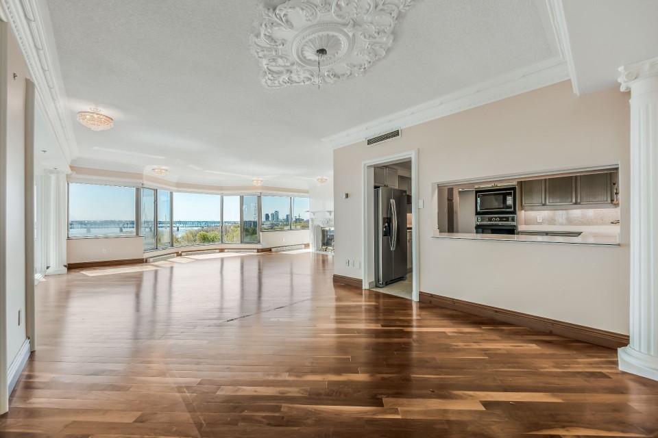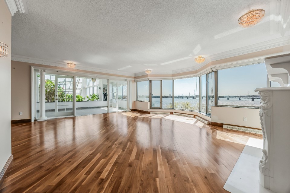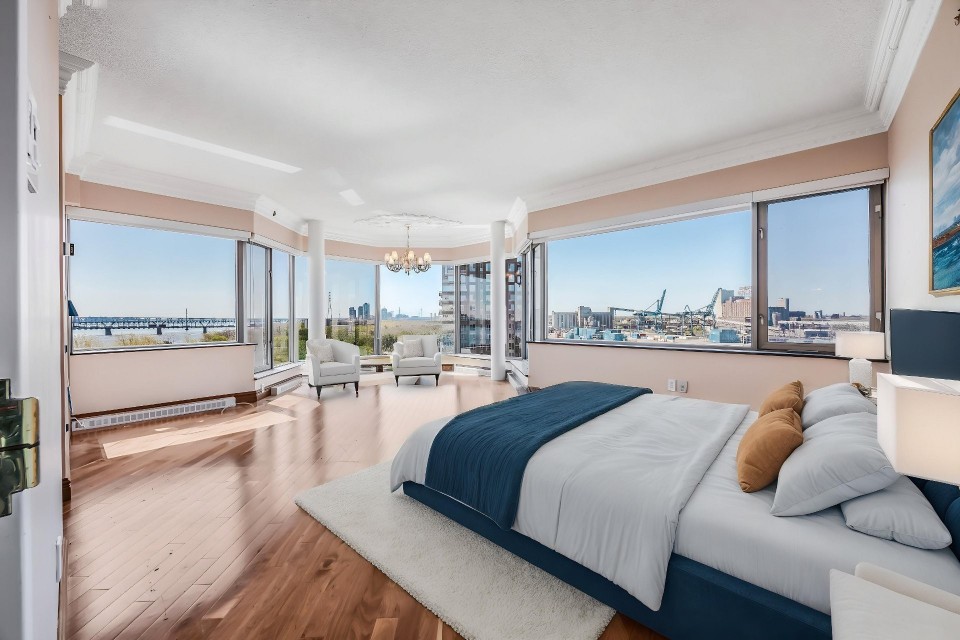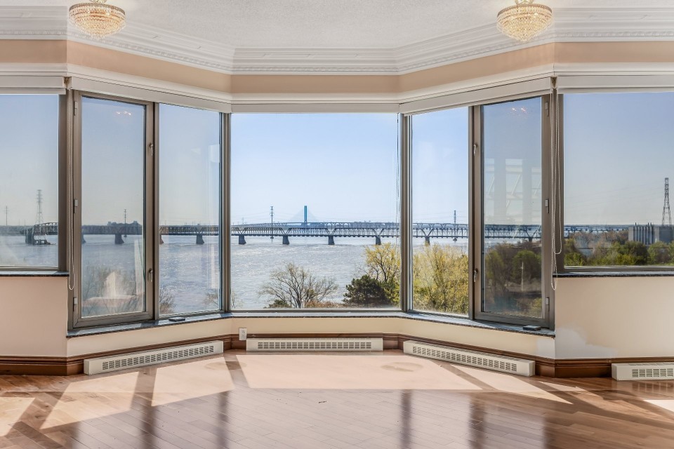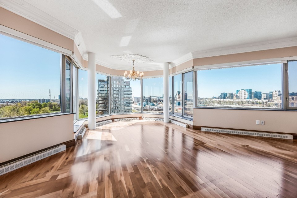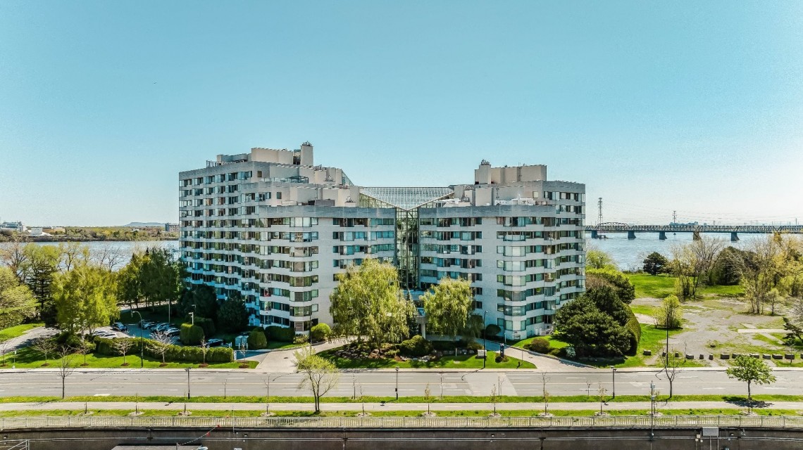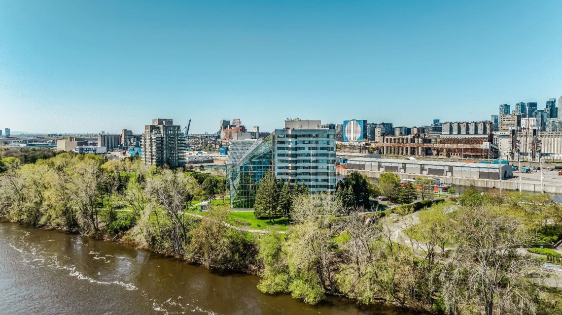 CORNER UNIT with a rare and sought-after orientation at Tropiques Nord! Stunning cross-layout unit of 2,428 sq. ft. offering 3 bedrooms, 2 bathrooms, and 1 powder room. Spacious and open living area with abundant windows and access to a +360 sq. ft. terrace located in the indoor tropical atrium. Exceptional panoramic views of the river, downtown, Old Port, and Champlain Bridge. 2 garages, 1 storage space, 1 wine cellar. Distinctive amenities include 2 pools, spa, sauna, squash, tennis, meeting room, and riverside garden. Just 5 minutes from downtown and a must-see! CORNER and CROSS-UNIT with the MOST DESIRABLE ORIENTATION at Tropiques Nord! A TRUE OASIS OF PEACE just minutes from Downtown, this spacious condo with a perfect layout opens onto an incredible TROPICAL FOREST--an impressive 32,000 sq. ft. of lush greenery with waterfalls, all within a glass atrium. A truly EXCEPTIONAL SETTING and UNIQUE CONCEPT sure to please the most discerning buyers! DESCRIPTION: - Large central entrance hall - Open-concept layout including kitchen, dining room & living room with access to the terrace - Exceptional panoramic views of the river, Champlain Bridge, Downtown Montreal, and the Old Port - Open kitchen with plenty of storage - Spacious dining area between the kitchen and living room - Large living room with impressive windows and a luxurious wood-burning fireplace - Massive primary bedroom with a large walk-in closet and ensuite bathroom featuring -Windows, glass shower & separate bathtub - 2 additional bedrooms, one currently used as an office - 2nd full bathroom - Powder room - Closed laundry room with storage - Over 360 sq. ft. of private terrace within the indoor tropical greenhouse - Hardwood flooring throughout - 2 indoor parking spaces - 1 storage locker on the ground floor - 1 wine cellar unit on the ground floor - Semi-private elevator TROPIQUES NORD offers its residents: *24/7 concierge and security *Semi-private elevators (only 2 units per floor) *Indoor LAGOON-style and outdoor heated saltwater pools *Beautifully landscaped garden along the St. Lawrence River *Spa and sauna *Fully equipped gym *2 tennis courts *1 squash court *Temperature-controlled wine cellar *Car wash area in the garage Garages: A-072 and A-073 Wine Cellar: 68 Storage: A-7 Come make your dream a reality!