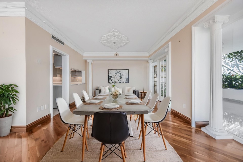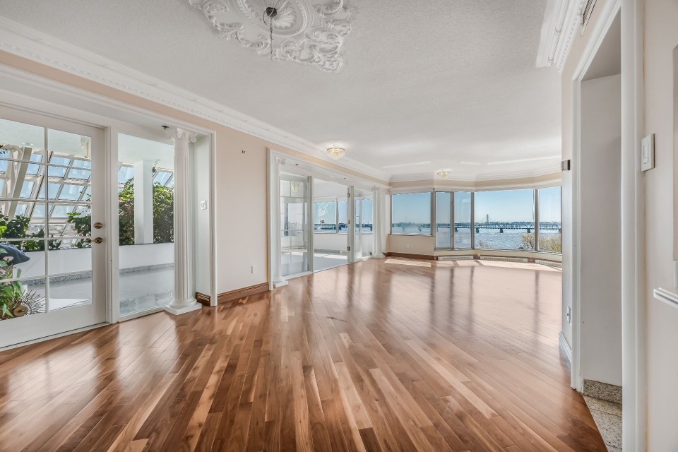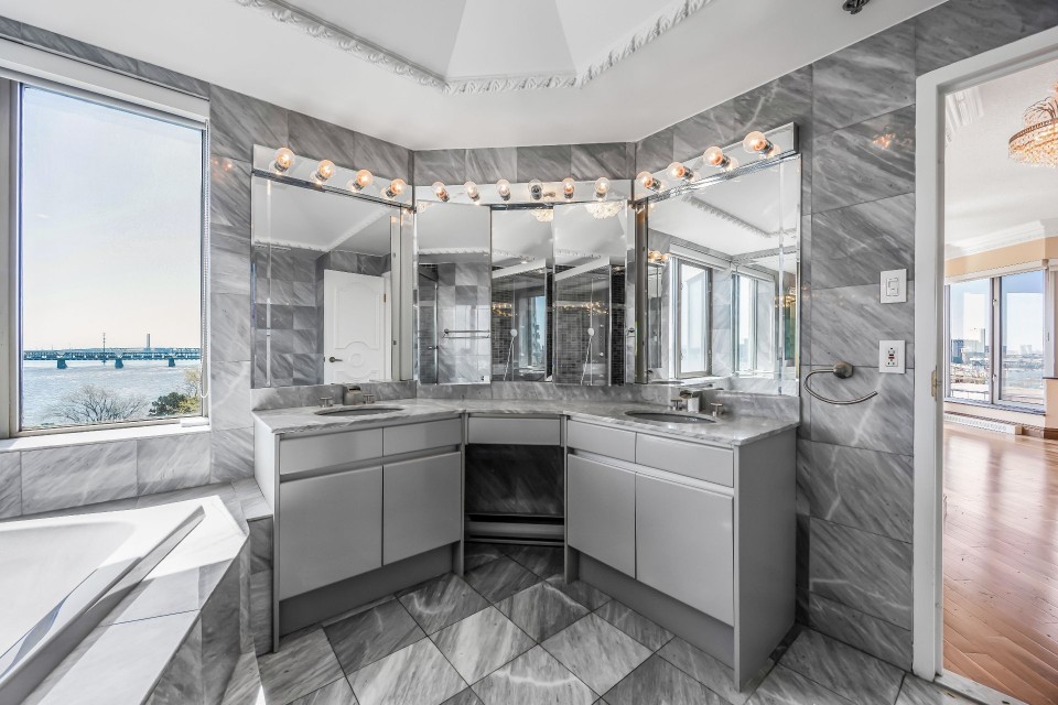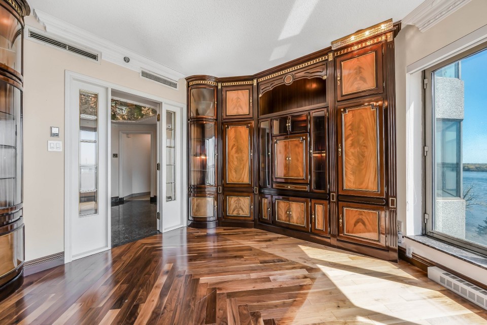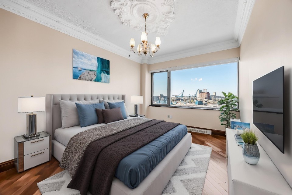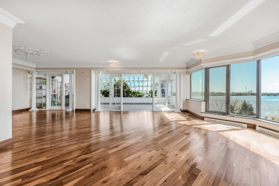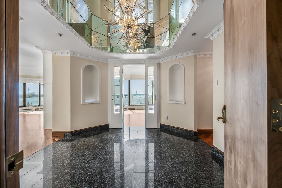 CORNER UNIT with a rare and sought-after orientation at Tropiques Nord! Stunning cross-layout unit of 2,428 sq. ft. offering 3 bedrooms, 2 bathrooms, and 1 powder room. Spacious and open living area with abundant windows and access to a +360 sq. ft. terrace located in the indoor tropical atrium. Exceptional panoramic views of the river, downtown, Old Port, and Champlain Bridge. 2 garages, 1 storage space, 1 wine cellar. Distinctive amenities include 2 pools, spa, sauna, squash, tennis, meeting room, and riverside garden. Just 5 minutes from downtown and a must-see! CORNER and CROSS-UNIT with the MOST DESIRABLE ORIENTATION at Tropiques Nord! A TRUE OASIS OF PEACE just minutes from Downtown, this spacious condo with a perfect layout opens onto an incredible TROPICAL FOREST--an impressive 32,000 sq. ft. of lush greenery with waterfalls, all within a glass atrium. A truly EXCEPTIONAL SETTING and UNIQUE CONCEPT sure to please the most discerning buyers! DESCRIPTION: - Large central entrance hall - Open-concept layout including kitchen, dining room & living room with access to the terrace - Exceptional panoramic views of the river, Champlain Bridge, Downtown Montreal, and the Old Port - Open kitchen with plenty of storage - Spacious dining area between the kitchen and living room - Large living room with impressive windows and a luxurious wood-burning fireplace - Massive primary bedroom with a large walk-in closet and ensuite bathroom featuring -Windows, glass shower & separate bathtub - 2 additional bedrooms, one currently used as an office - 2nd full bathroom - Powder room - Closed laundry room with storage - Over 360 sq. ft. of private terrace within the indoor tropical greenhouse - Hardwood flooring throughout - 2 indoor parking spaces - 1 storage locker on the ground floor - 1 wine cellar unit on the ground floor - Semi-private elevator TROPIQUES NORD offers its residents: *24/7 concierge and security *Semi-private elevators (only 2 units per floor) *Indoor LAGOON-style and outdoor heated saltwater pools *Beautifully landscaped garden along the St. Lawrence River *Spa and sauna *Fully equipped gym *2 tennis courts *1 squash court *Temperature-controlled wine cellar *Car wash area in the garage Garages: A-072 and A-073 Wine Cellar: 68 Storage: A-7 Come make your dream a reality!