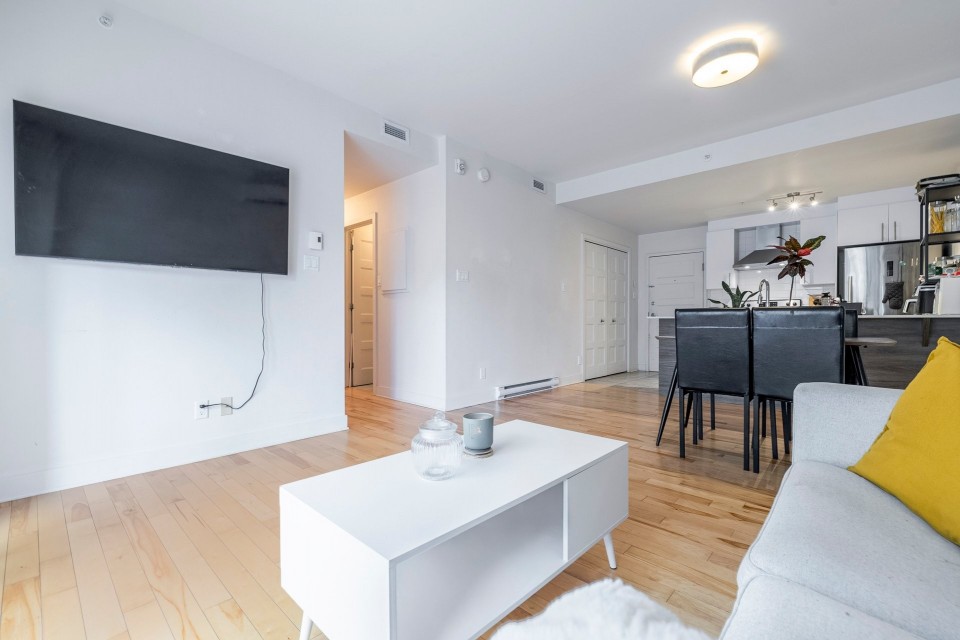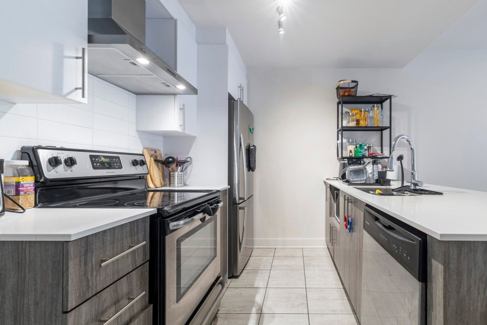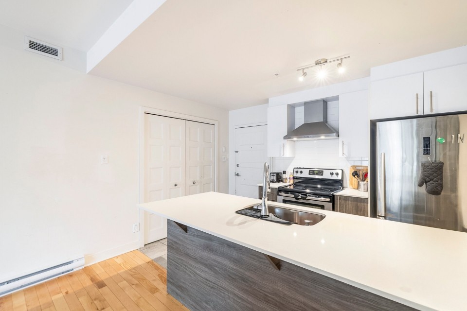 2-bedroom condo on the 2nd floor with interior storage. Beautiful covered balcony. Open-concept kitchen, living room, and dining room, quality materials. All appliances are included. Built in 2016, building with elevator, well-managed. The building is located a stone's throw from Lafontaine Park, a 5-minute walk from Papineau metro station, the shops on Ontario Street and all the services on Ste-Catherine Street, which becomes pedestrianized during the summer season. 10 minutes from downtown, the business districts, the Quartier des Spectacles, the Plateau Mont-Royal, Old Montreal and the Old Port.