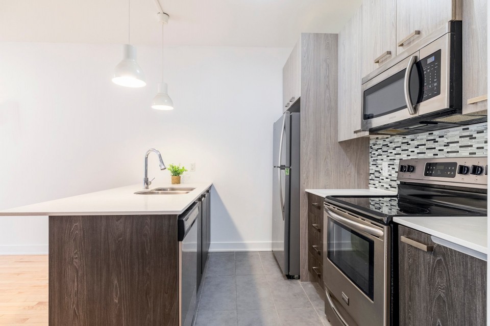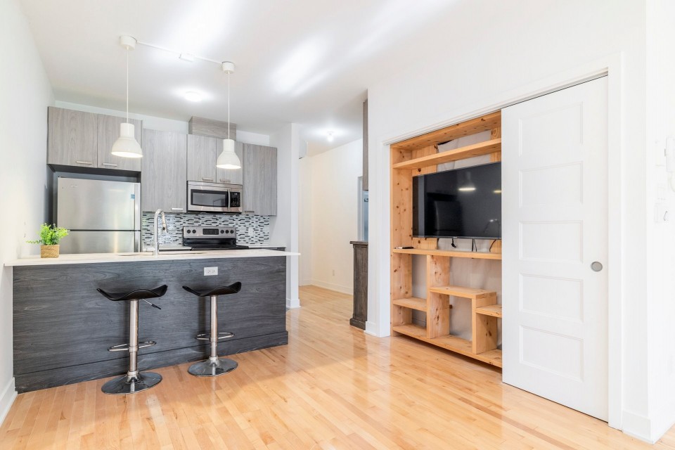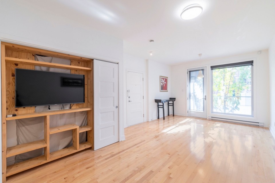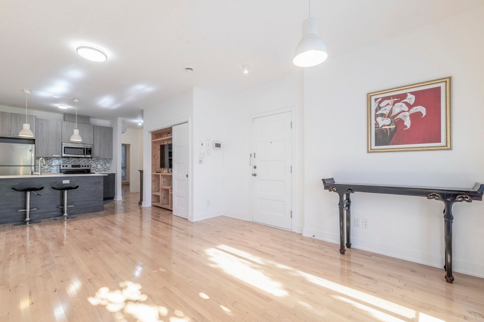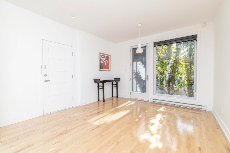 9 feet ceiling, two big storages space, two balconies, this two bedrooms spacious & sunlight Condo even if on the first floor, large quartz countertops. Situated in a quiet one way street, steps to Metro, adjacent to a vibrant community full of Culture & Art. High rental demand & Investment potential, turnkey right now! Looking for urban convenience, walkability and vibrant city life? This stunning property is perfect for homebuyers and investors in the Heart of Plateau-Mont-Royal. Promenade among Prince-Arthur, Duluth Avenue, Quartier des Spectacles, Saint-Laurent Boulevard lined with cafés & restaurants. Wonderful and artsy, profit the best of Montreal's lifestyle.