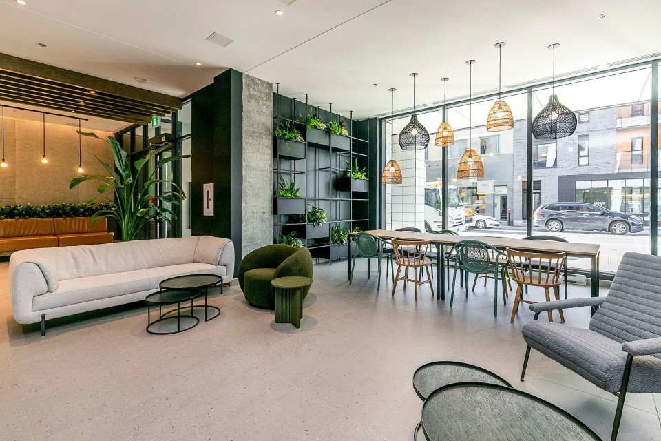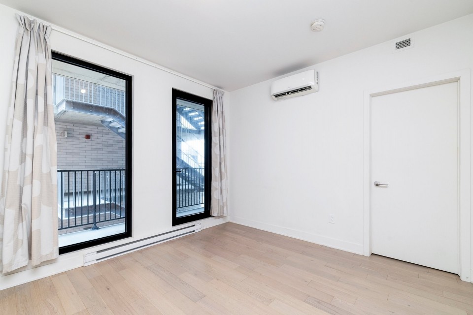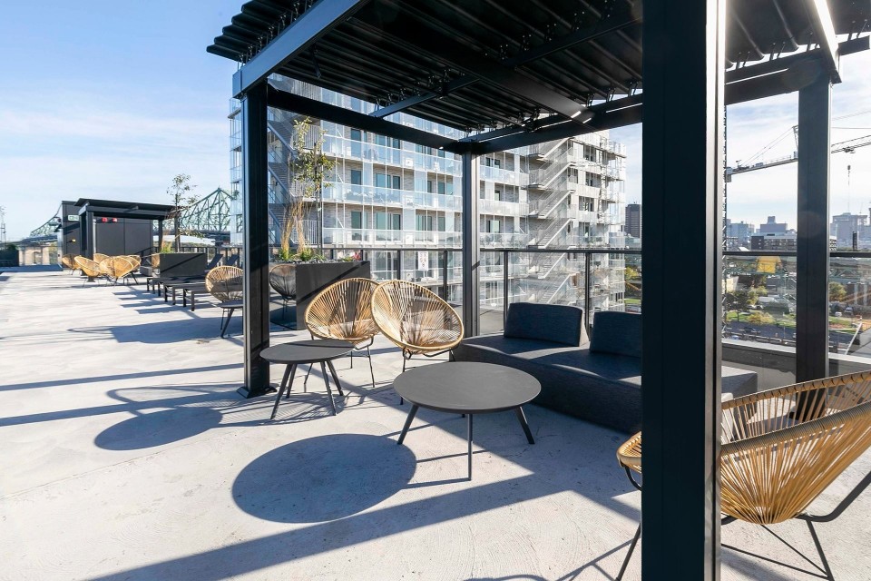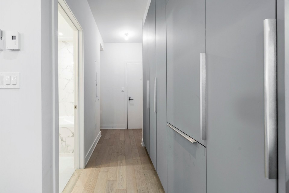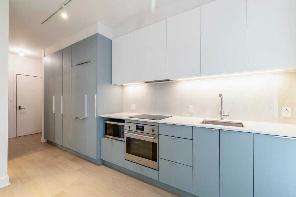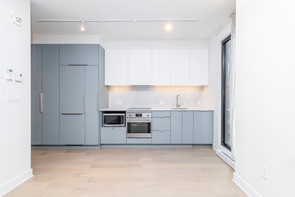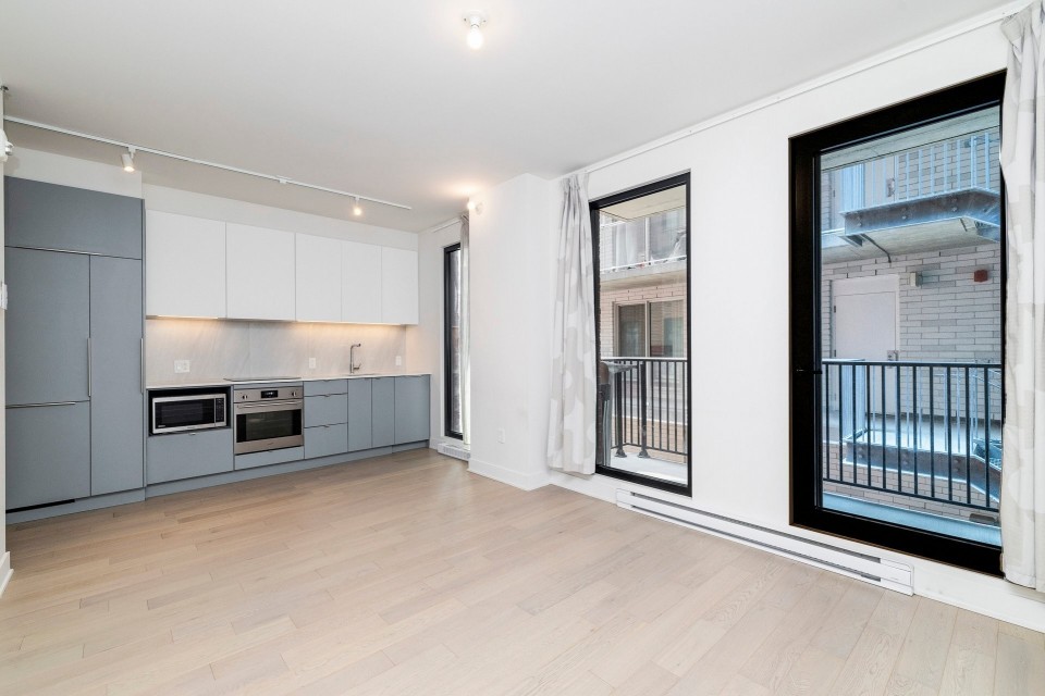 Bright 3 1/2 condo with walk-in closet and cool balcony. Open concept kitchen and living room, modern design, elegant finishes, ready for move in. New building of 2022 from the very renowned developer Prével. The common areas will charm you, which offers terraces and a rooftop pool, a workout room, a large lobby and outdoor lounge areas with incredible views! Perfect location, just a 4-minute walk from Papineau Metro station, in the upscale Esplanade Cartier, near parks, shops, restaurants and all services!