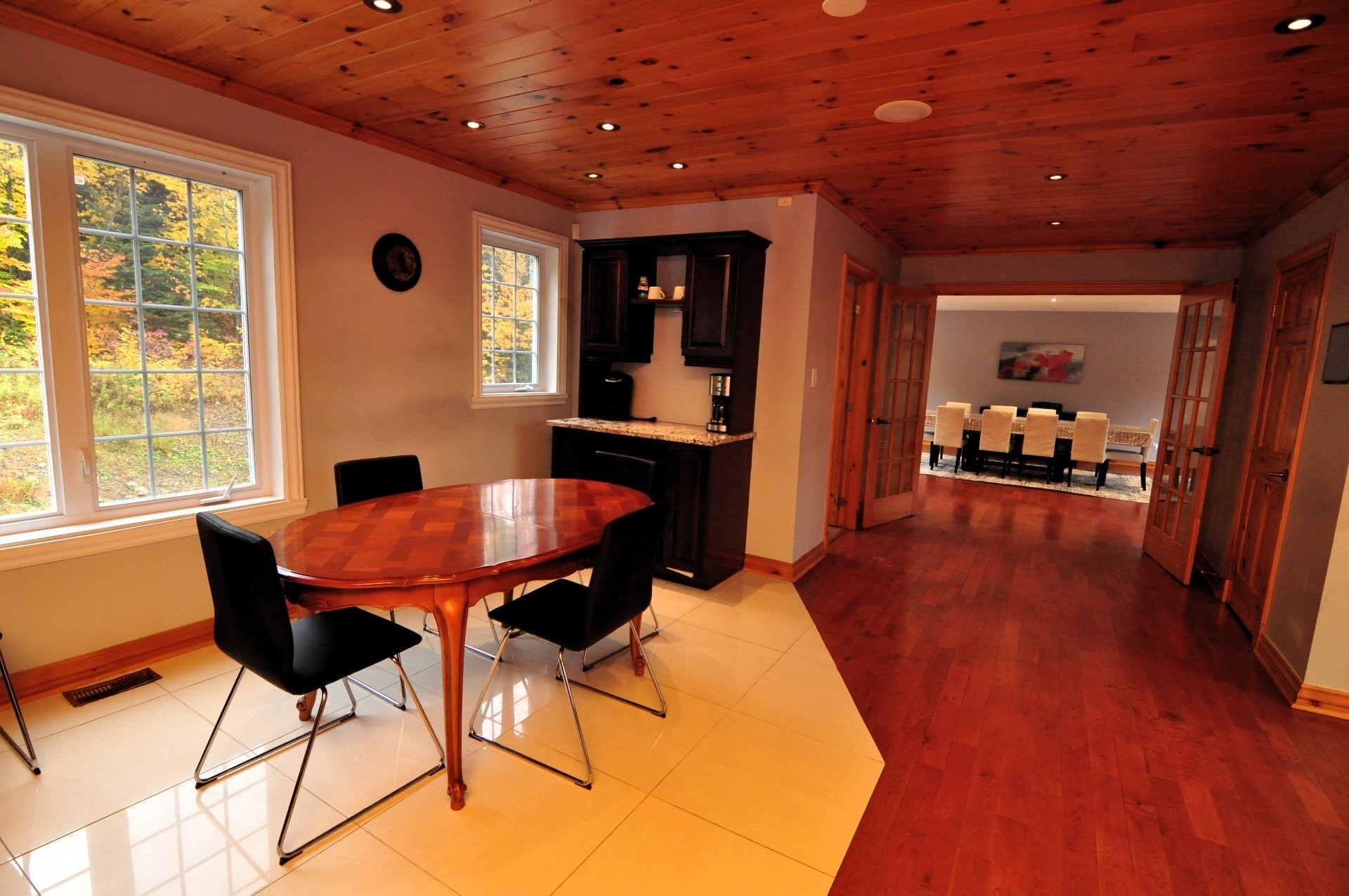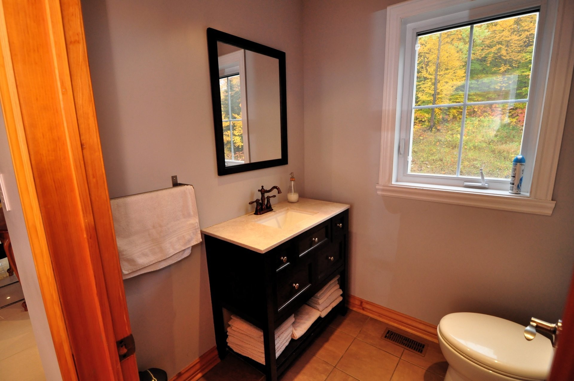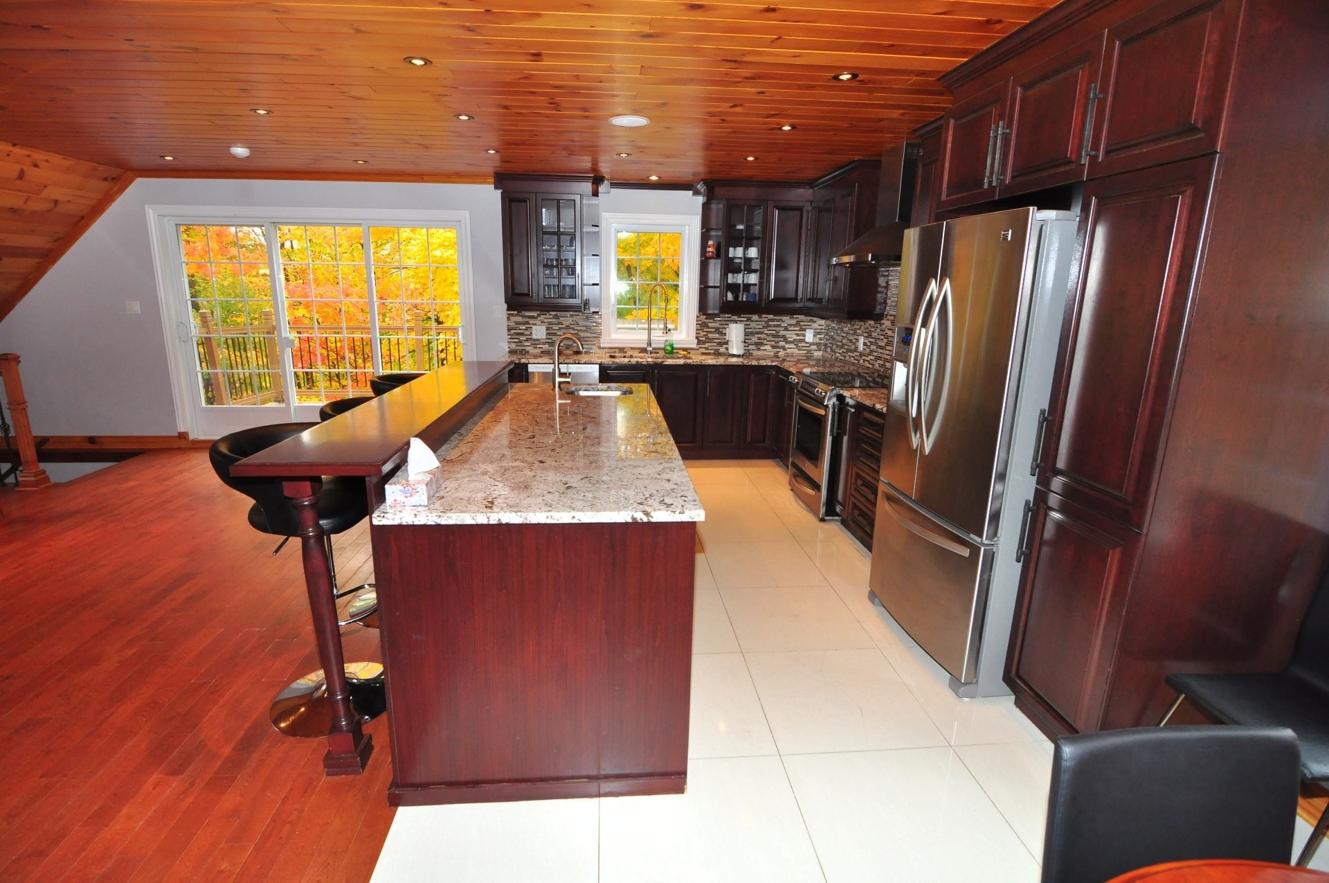 Welcome to this rare Real Estate Pearl, placed in an exclusive area of Saint-Hippolyte, with an impressive view towards Lac Thibeault, at only 20 minutes from Saint-Sauveur and less than one hour from Montreal. ***** For more information I invite you to read the addendum and to watch the virtual tour. This generous property that covers a total area of over 346,000 sqft has all the elements of luxury, elegance and distinction. The house was built with great attention for details and by using high quality materials. The sumptuous entry, the 25 ft high ceiling, the large windows, the special design of the living room, the kitchen with a massive double view wood fireplace and the master bedroom are simply breathtaking. The kitchen is a combination of wood, ceramics and porcelain, with an impressive island in the middle on the splendid floor. There are 3 bedrooms, 2 bathrooms and 2 powder rooms (1 "en-suite"), one large family room, dinette and one impressive dining room. The house is also equipped with an exterior SPA, central vacuum, alarm and video surveillance system. There are 4 huge garages, with a driveway that has a total capacity of more than 15 cars. This sumptuous property offers privacy, a splendid water view and access to a forest. Words are not able to describe the beauty of this property!