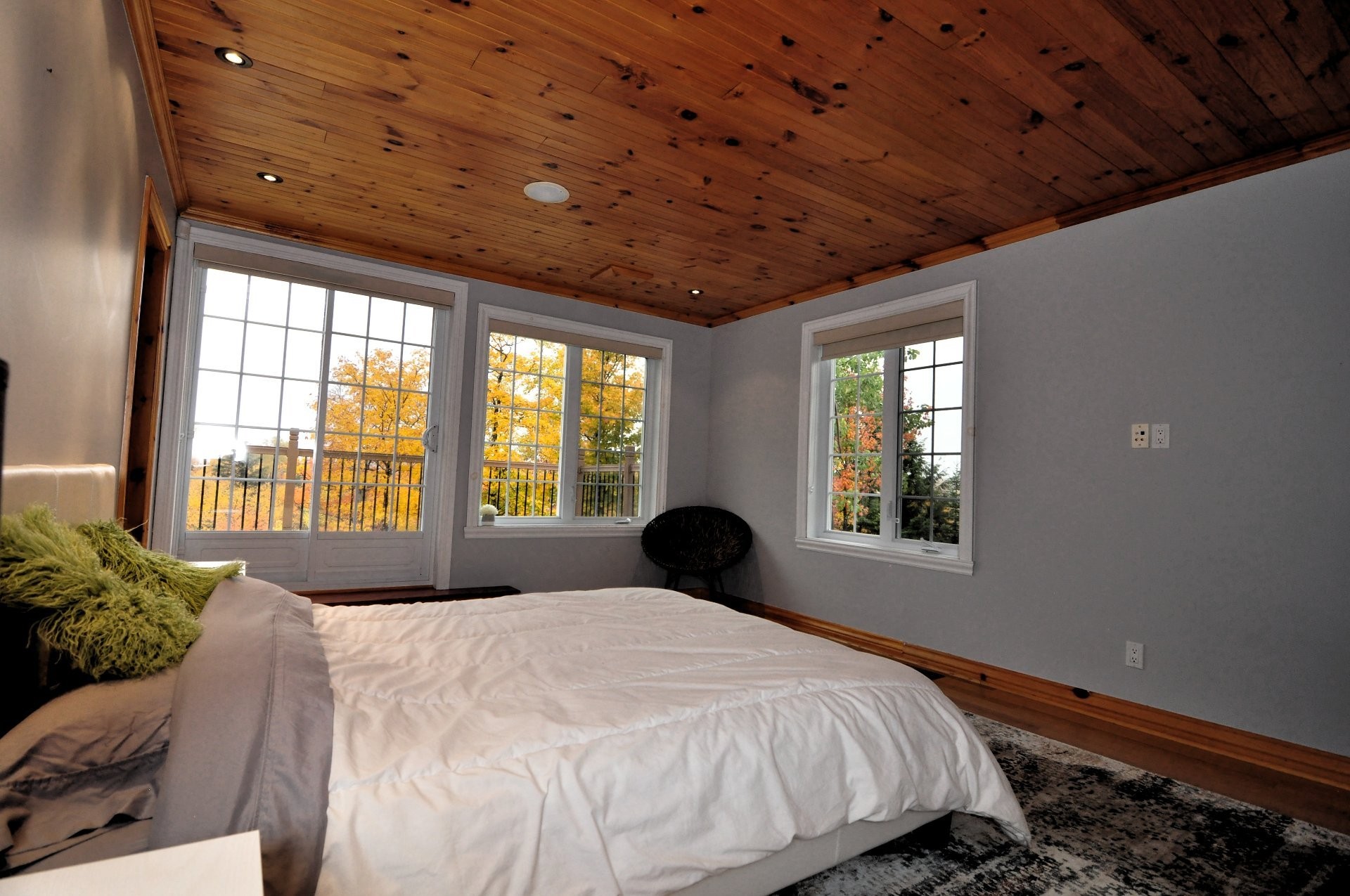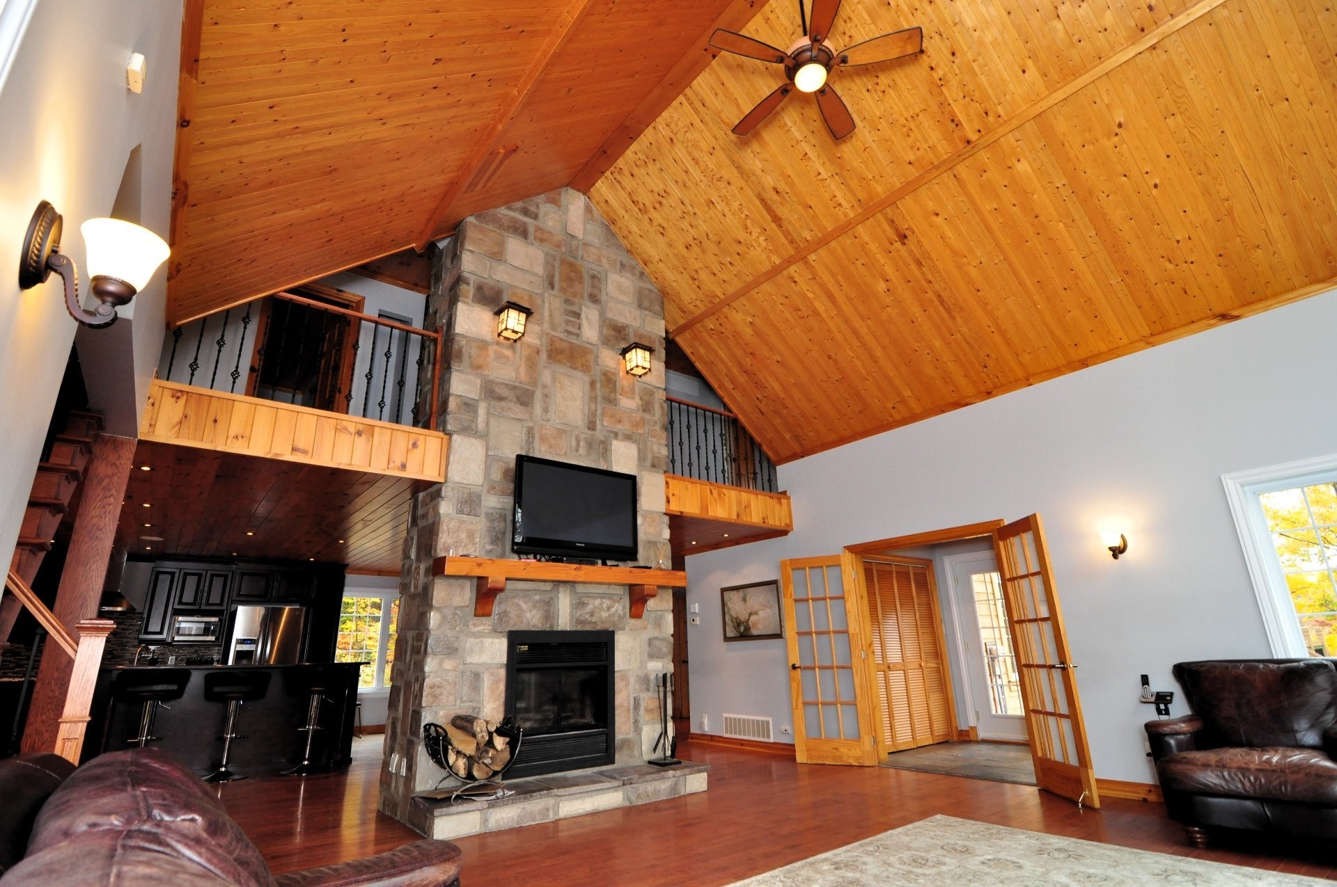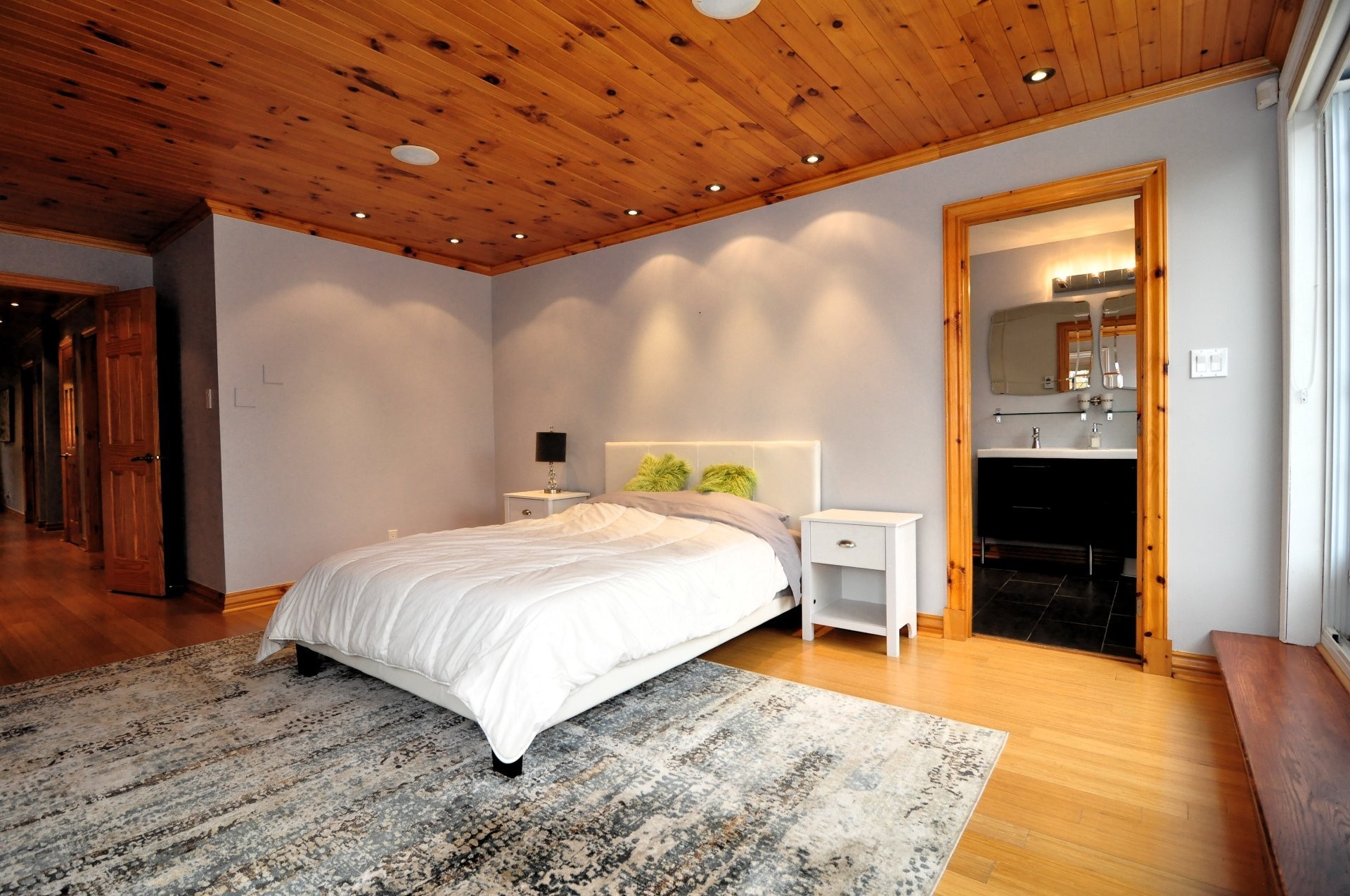 Welcome to this rare Real Estate Pearl, placed in an exclusive area of Saint-Hippolyte, with an impressive view towards Lac Thibeault, at only 20 minutes from Saint-Sauveur and less than one hour from Montreal. ***** For more information I invite you to read the addendum and to watch the virtual tour. This generous property that covers a total area of over 346,000 sqft has all the elements of luxury, elegance and distinction. The house was built with great attention for details and by using high quality materials. The sumptuous entry, the 25 ft high ceiling, the large windows, the special design of the living room, the kitchen with a massive double view wood fireplace and the master bedroom are simply breathtaking. The kitchen is a combination of wood, ceramics and porcelain, with an impressive island in the middle on the splendid floor. There are 3 bedrooms, 2 bathrooms and 2 powder rooms (1 "en-suite"), one large family room, dinette and one impressive dining room. The house is also equipped with an exterior SPA, central vacuum, alarm and video surveillance system. There are 4 huge garages, with a driveway that has a total capacity of more than 15 cars. This sumptuous property offers privacy, a splendid water view and access to a forest. Words are not able to describe the beauty of this property!