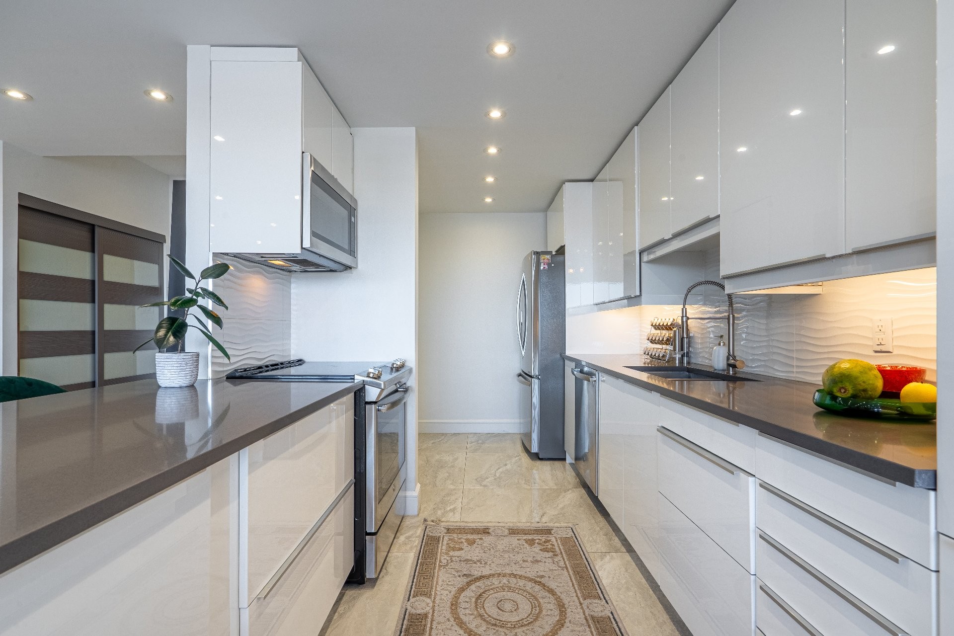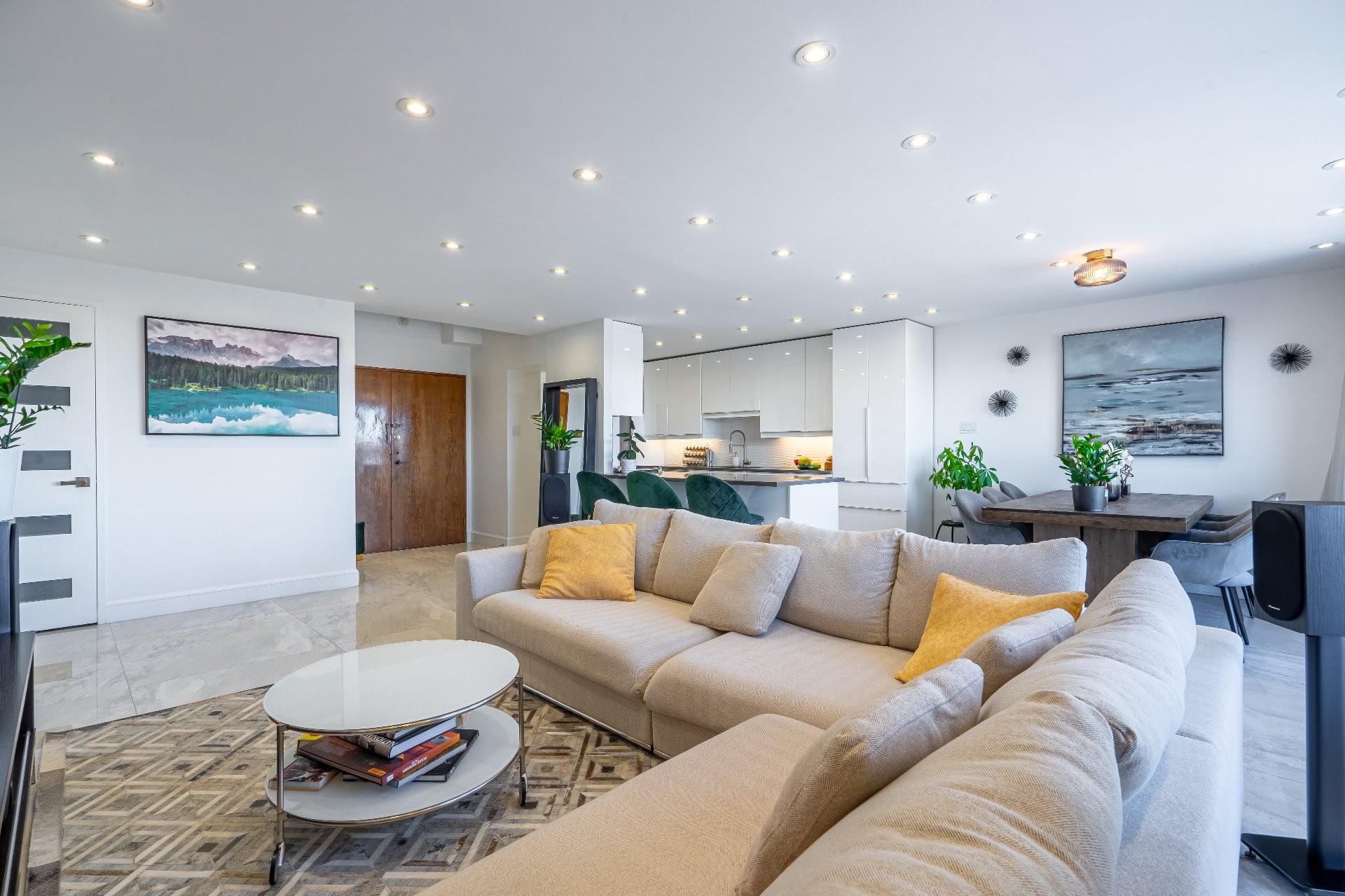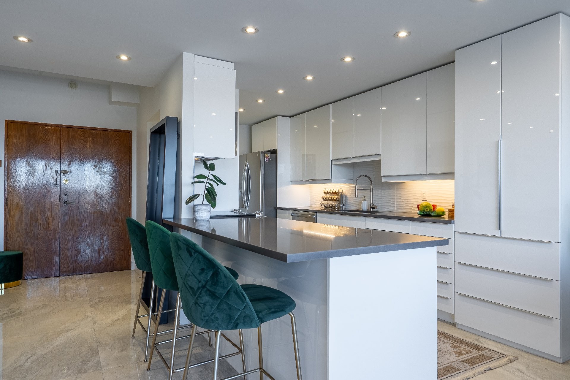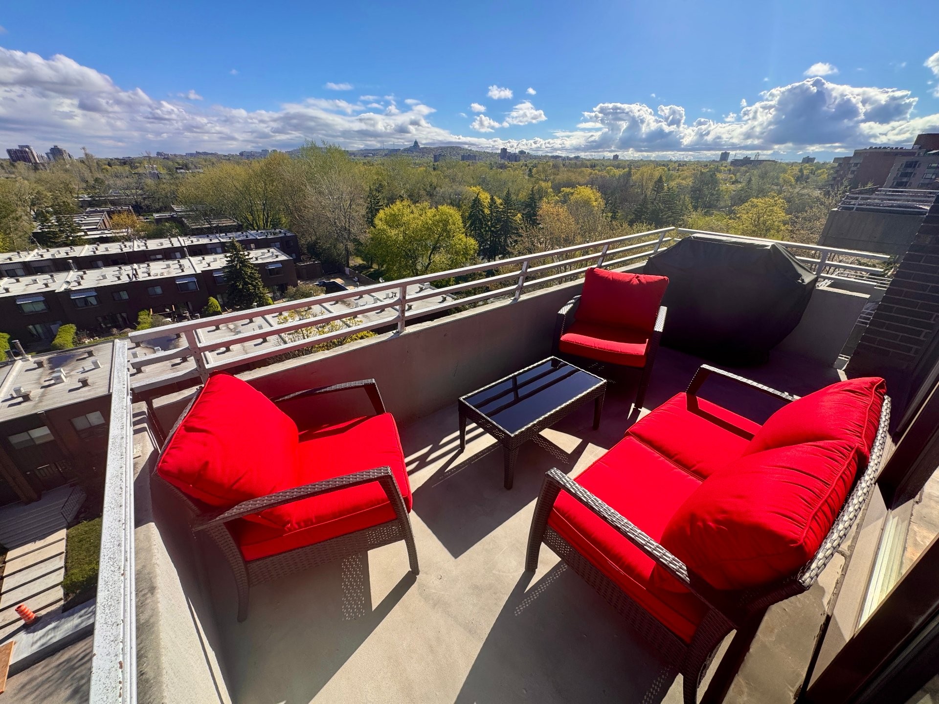 Turnkey Condo with Unobstructed Views This fully renovated 2019 condo offers a bright, modern living space with high-quality finishes throughout. The open-concept kitchen features premium appliances, quartz countertops, and an 80-inch island, ideal for everyday living and entertaining. The bedrooms have engineered hardwood, while the living areas are finished with stylish tiles. The spacious living and dining areas lead to a large balcony with panoramic views of Mount Royal and Saint Joseph's Oratory. With no balcony overhead, you'll enjoy privacy and an open outdoor space. Stunning views can be seen from every room. Key Features: -2 spacious bedrooms and 2 full bathrooms, including a master suite with a walk-in closet and ensuite bathroom -Bright and airy with great views from every room -Generous open-concept living and dining areas -Expansive balcony with unobstructed views -- no balcony above, creating an open and airy feel -Modern kitchen renovation (2019) with 80-inch island, quartz countertops, high-performance appliances, and new cabinets -Full bathroom renovations with modern vanities, new sinks, toilets, showers, tubs, and updated plumbing -New flooring throughout, including ceramic tiles in the kitchen, entryway, laundry room, and bathrooms -New laundry room with 240V dryer connection for added convenience -High-end lighting redesign throughout the condo -Entry closet for coats, jackets, and shoes Additional Amenities: -1 indoor parking space and 1 storage locker included -Le Rembrandt amenities include an outdoor pool, fitness room, sauna, and laundry room on each floor -On-site administration office and excellent building management -Security cameras and secured entrance -Well-maintained common areas and contingency fund Condo Fees Include: Hot water, cable, high-speed internet (Bell 1.5 Gbps), building insurance, and maintenance of common areas. A rare opportunity to own in a highly sought-after building in an exceptional location. Don't miss out!
