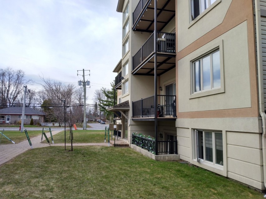 PLEASE NOTE...HALF BASEMENT Unit! You would be surprised from the cozy feeling due to its layout once stepping inside.Californian style condo with central heating and air conditionning - Hardwood and ceramic flooring - Gaz fireplace in living room - Open area concept with two bedrooms - 8 feet patio door giving as much sunlight as you can have,high ceilings,2 exterior parking, close to shops, services, and 3 major highways (20, 30 and 40)