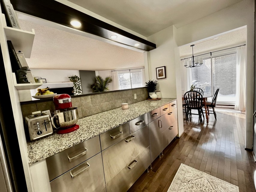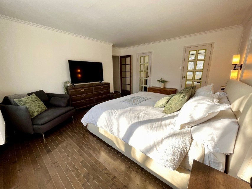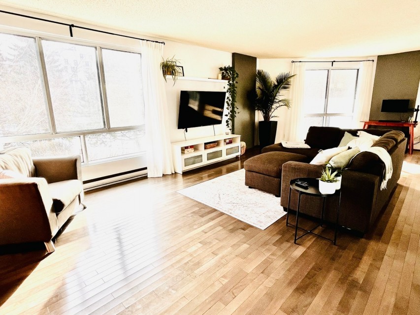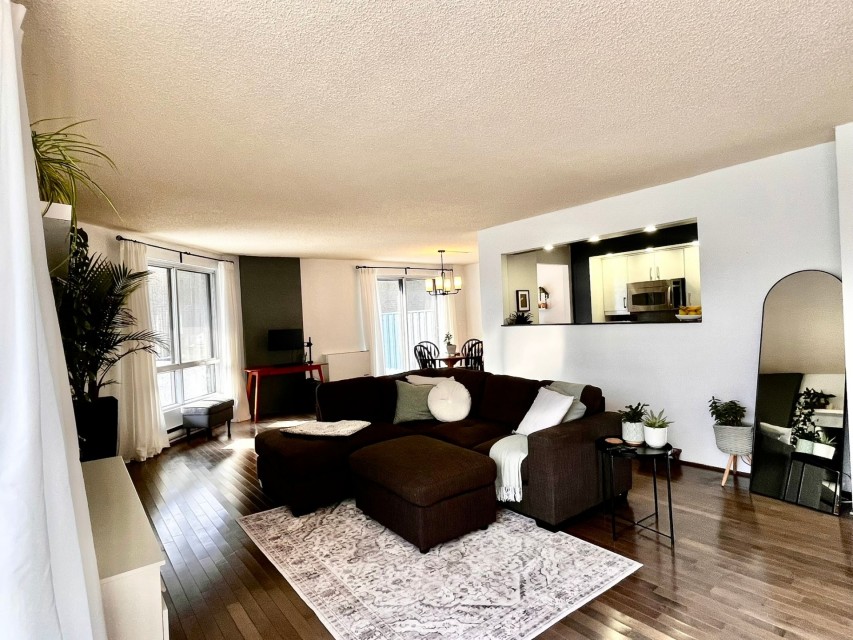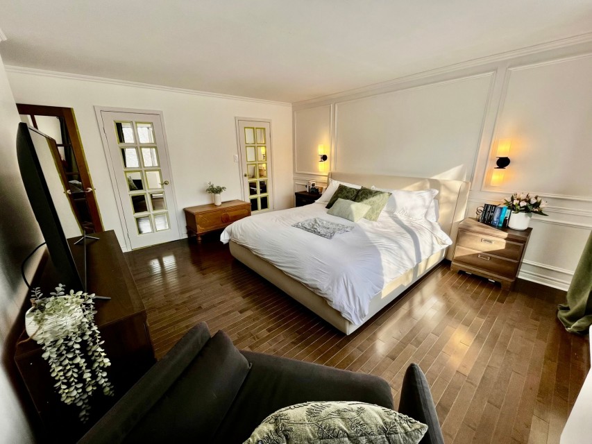 Magnifique et spacieux condo de 2 chambres et 2 salles de bain d'une superficie de 1250 pieds carrés, comprenant un grand salon/salle à manger à aire ouverte avec coin bureau, une cuisine rénovée, une immense terrasse privée, un stationnement intérieur et un casier privé. La chambre des maîtres dispose d'une salle de bain attenante. La deuxième chambre est équipée d'un lit escamotable. Deux unités de climatisation murale, cuisine moderne. Appartement très lumineux. Électricité et chauffage inclus! Emplacement idéal pour ceux qui recherchent la tranquillité, à proximité d'espaces verts et du bord de l'eau. Dsiponible 1er avril 2026. Bienvenue à l'immeuble Le Champlain, sur l'Île-des-Soeurs! L'immeuble offre une piscine extérieure, des jardins aménagés, deux courts de tennis, un gymnase et des saunas dans les vestiaires pour hommes et femmes. À proximité du Parc Sainte-Famille et du Parc de la Fontaine, vous poucez ccéder à la piste polyvalente qui longe le bord de l'eau de l'Île-des-Soeurs, idéale pour des randonnées, la course à pied ou le vélo. Accès rapide aux autoroutes menant au centre-ville ou à la Rive-Sud. À cinq minutes en voiture du centre commercial regroupant de grandes chaînes d'épiceries et de pharmacies, ainsi que de nombreux cafés et restaurants. Un appartemment magnifique et spacieux dans un emplacement idéal pour une vie paisible et saine.