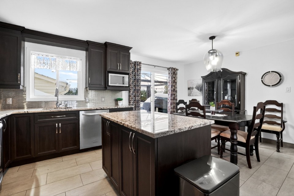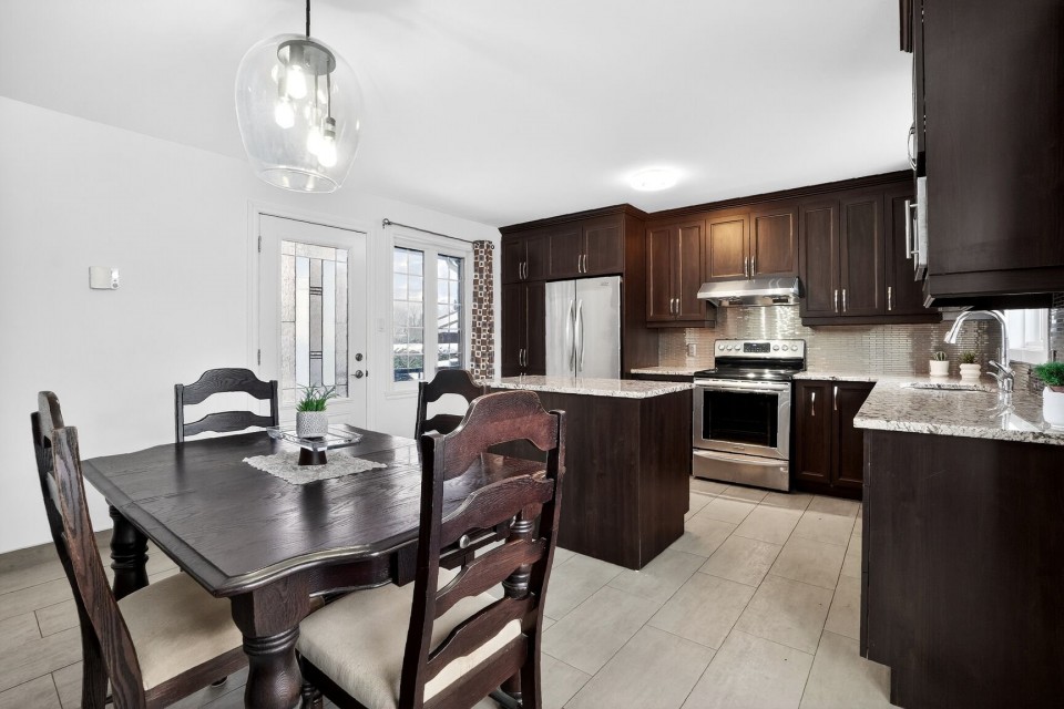 Superbe bungalow entièrement rénové, situé au coeur de Vaudreuil-Dorion et offert pour la première fois par le propriétaire d'origine. Cette propriété clé en main propose 4 chambres, 2 salles de bain complètes, un sous-sol aménagé et un grand garage avec accès direct. Cour clôturée avec terrasse et piscine chauffée. À proximité de l'Autoroute 40, des écoles, des parcs et de tous les services. Une occasion rare à saisir. Située dans un croissant tranquille et familial de Vaudreuil-Dorion, cette propriété a été soigneusement entretenue et rénovée au fil des ans. Principales améliorations : * 2014 : Fenêtres et portes remplacées * 2007 : Ajout d'un grand garage détaché chauffé * 2018 : Salle de bain du sous-sol entièrement rénovée * 2020 : Salle de bain du rez-de-chaussée entièrement rénovée * 2016 : Cuisine rénovée avec beaucoup de rangement et comptoirs en granit * 2020 : Nouvelle piscine hors-terre chauffée avec thermopompe électrique * 2022 : Nouvelle thermopompe murale installée * 2025 : Toiture remplacée * 2025 : Planchers en parquet sablés et vernis, peinture complète, nouveaux luminaires et nouvelles portes intérieures La cour arrière offre deux patios et deux gazebos, parfaits pour profiter pleinement de l'été. Idéalement située près des parcs, du transport en commun, des commerces, des services et des écoles, avec un accès rapide aux autoroutes pour faciliter les déplacements.