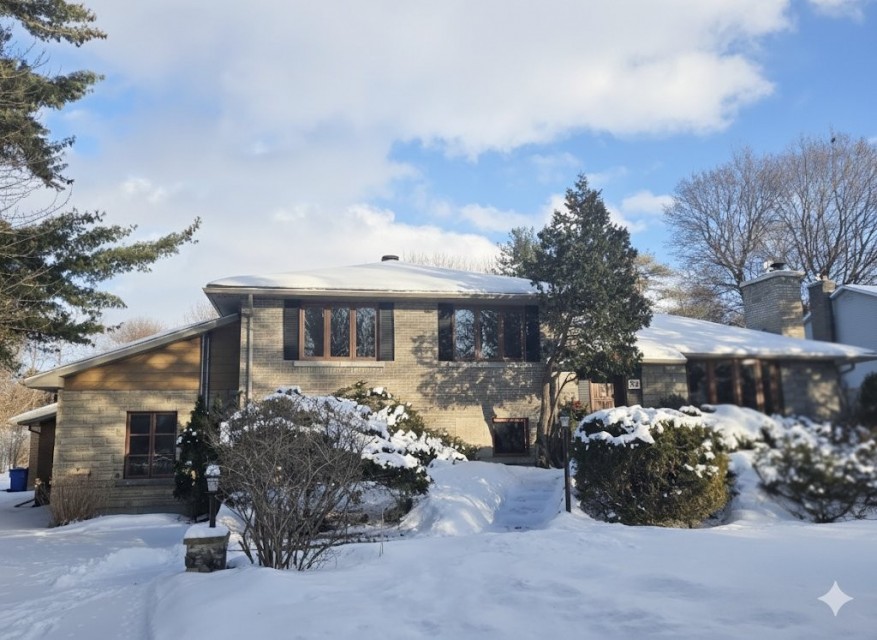 A Secluded Oasis in Montreal. Discover a hidden gem tucked away on a sprawling 38,608 sf lot. This beautifully redesigned and extended home offers an unparalleled indoor-outdoor lifestyle, creating a private paradise without ever leaving the island of Montreal. A long, private driveway leads you to the double garage and a gated entrance, opening to an expansive property complete with a large swimming pool and your own private wooded area. The Main Residence: Step through the inviting front entrance into a redesigned open-concept home. The main floor features:*A spacious living room with a cozy propane fireplace and a gorgeous bay window; *A formal dining room with a large patio door that opens onto an expansive deck, offering commanding views of your private domain. *A redesigned kitchen with abundant storage and a large prep area, perfect for the home chef. *Four bedrooms and two bathrooms, providing ample space for family and guests. *A bright, versatile room ideal for a home gym or playroom, plus a large laundry room and additional storage. *A chic French door reveals a sun-drenched family room, complete with its own propane fireplace. It's the perfect spot to curl up with a good book or enjoy views of the pool and backyard through a massive glass door. Inter-generational Bungalow Suite: A magnificent arched wooden door beckons you into a second, self-contained property. This inter-generational bungalow is perfect for extended family or as a guest suite, featuring: *A living room/family room with large windows and skylights that flood the space with natural light. *A second kitchen and dining area with floor-to-ceiling windows facing the gorgeous pool. The country-style stove and decor create a warm, rustic feel, complemented by a sitting area designed to take in the stunning views. An Outdoor Paradise Designed for an exceptional lifestyle, this sprawling property offers every opportunity to enjoy the magnificent grounds. Multiple access points, including two sets of patio doors and a third door from the second kitchen, lead to your outdoor oasis. Whether you're dining on the elevated wooden deck, playing games on the lawn, or simply relaxing by the pool, you'll feel transported to a private, tranquil resort. This is more than a home; it's a secluded retreat where you can escape the stresses of the day.