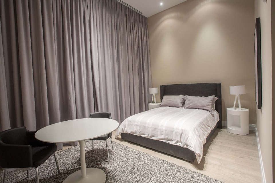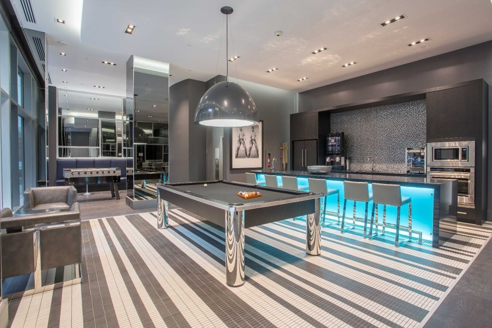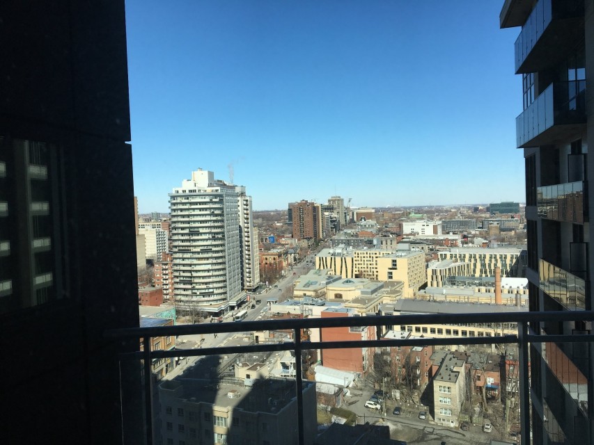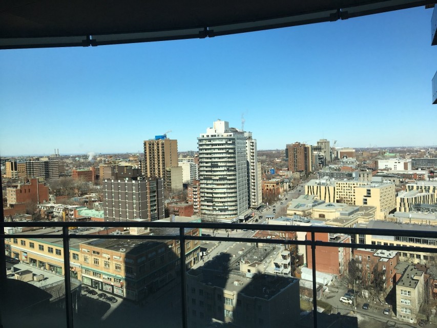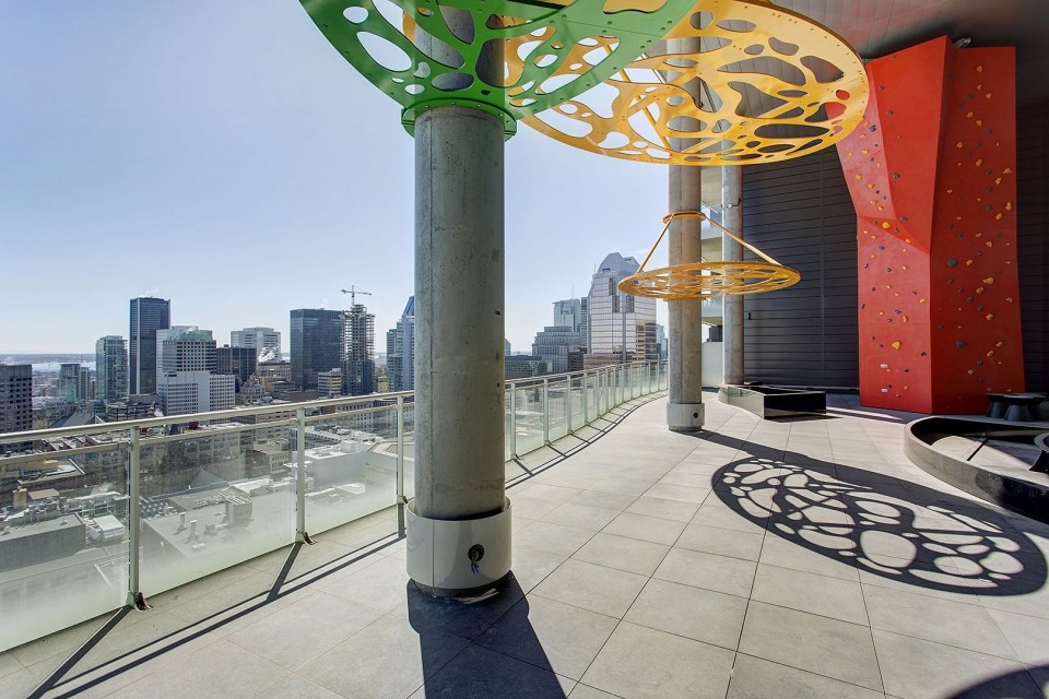 FURNISHED Condo at LE PETERSON: 27th floor 2 BDRM with 2 study corners, balcony, all appliances included. All the amenities of this luxury building available for tenant's use including private 3 story climbing wall. Rent this condo and be close to McGill University, Chinatown, the Quartier des Spectacles as well as the metro station & bus. Avail August 01 2026. The luxurious Le Peterson building offers you 24/7 security,3 high speed elevators, a guest suite for your overnight visitors, and 5 common spaces for socialising: On the ground floor there is #1) a party/games room with large screen television, Fuzball & pool tables, popcorn and Nespresso machines as well as a presentation kitchen for your events, #2) a quiet piano lounge, and #3) a bike repair and exercise room. The 28th floor has #4) an open skydeck with a 3 flr climbing wall, BBQ, and sunning area, and #5) a gym, situated on the south-east corner and surrounded by wrap-around floor to ceiling windows offering a grand view of the Entertainment District and the StLaurent River! Please note: one year minimum lease, no short term subletting, no AirBnB, no smoking,no cannabis will be permitted in the apt. Tenant must acquire tenant insurance with civil liability before moving in, and pay the moving fees of the building. AVAILABLE AUGUST 1 2026
