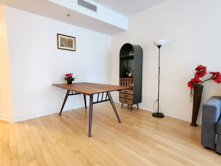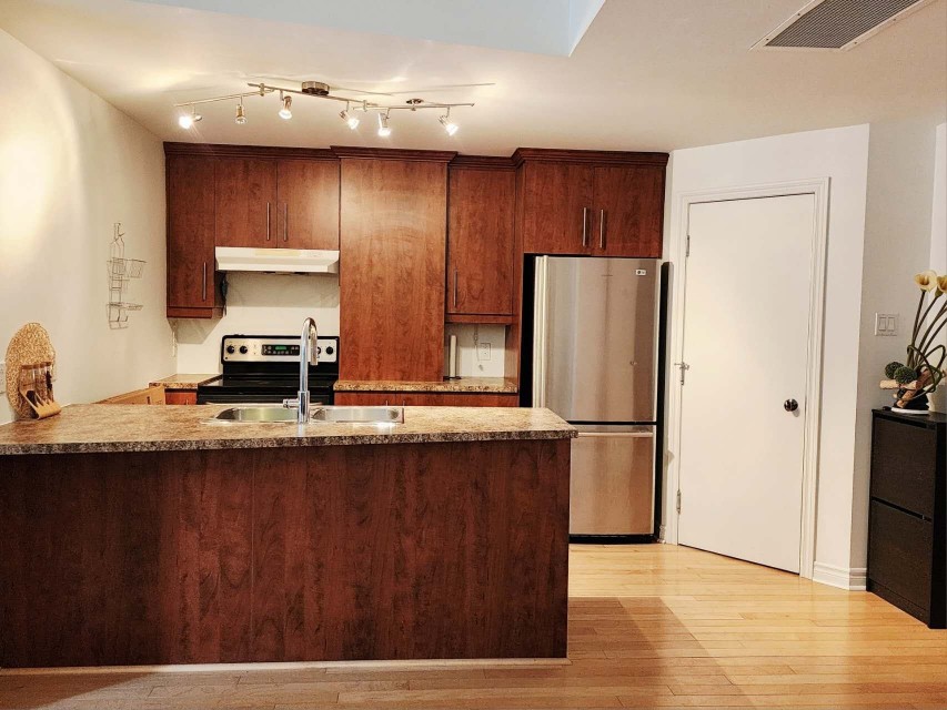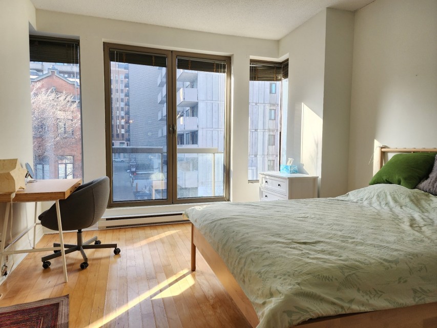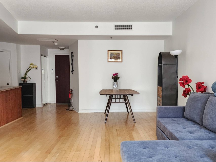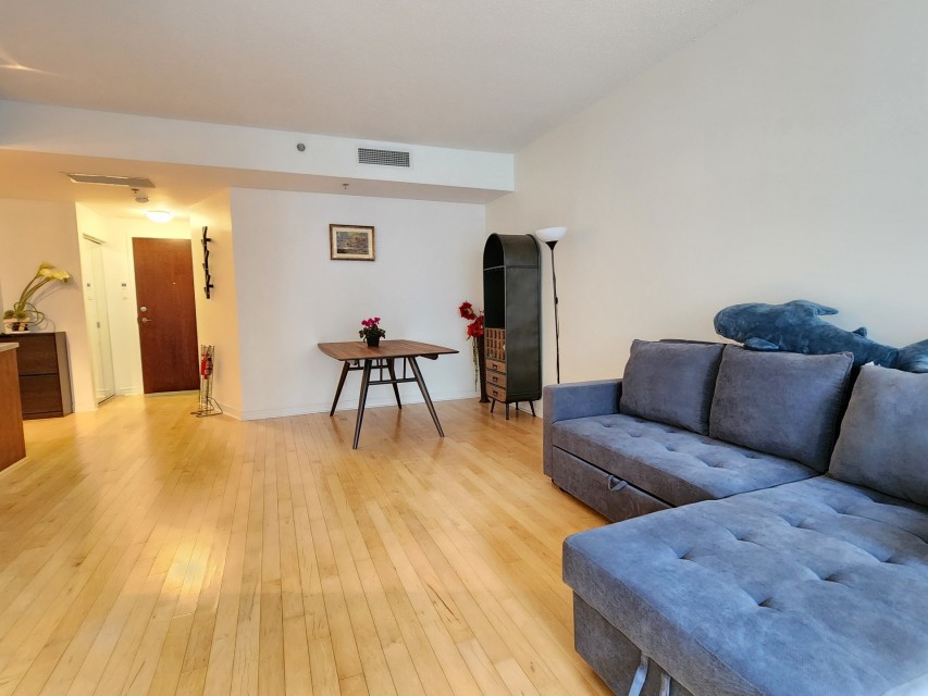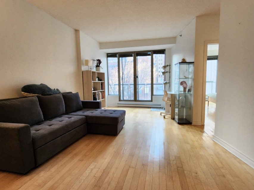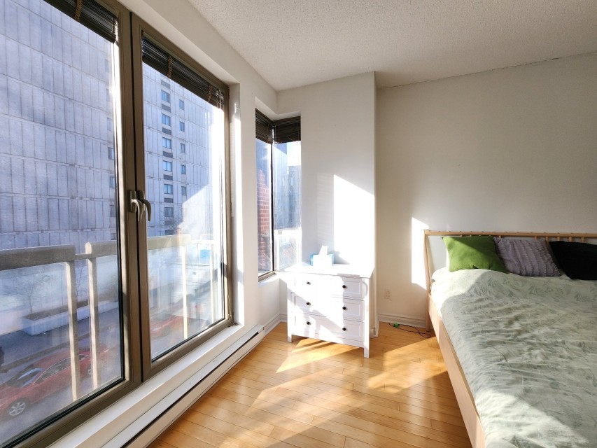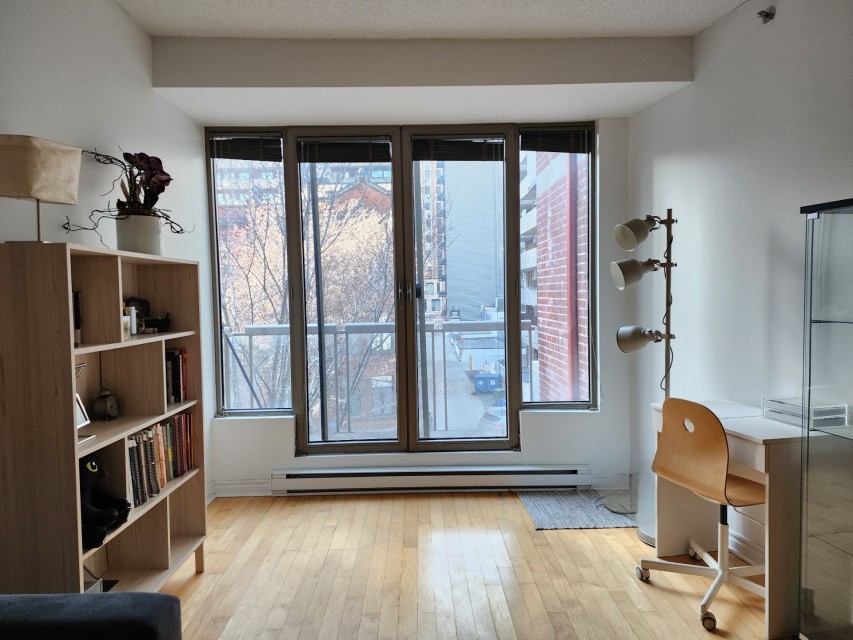 This centrally-located 3 1/2 condo (727sqft)in downtown Montreal is an excellent investment opportunity, perfectly positioned between the Atwater and Guy-Concordia metro stations. Converted in 2005, the unit combines modern functionality with a prime location near major educational institutions like Concordia University, Dawson College, and LaSalle College. Property Highlights Open-Concept Living: Features a bright, open-concept living, dining, and kitchen area. Outdoor Spaces: Includes one large balcony, a Juliet balcony, and access to a common rooftop terrasse with panoramic city views. Convenience & Security: The building offers an elevator and one interior parking spot.
