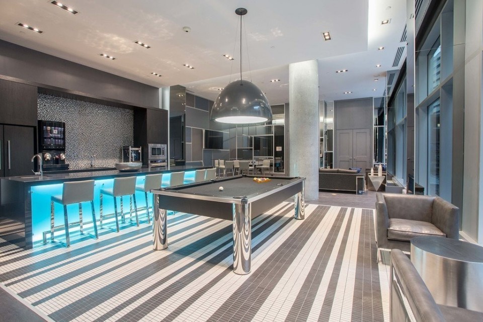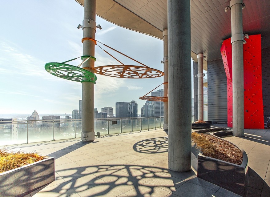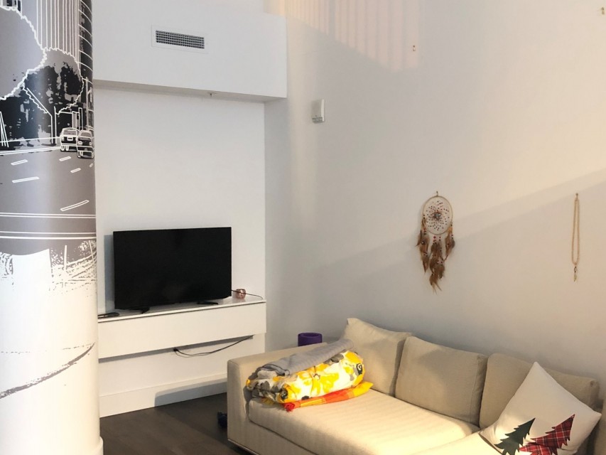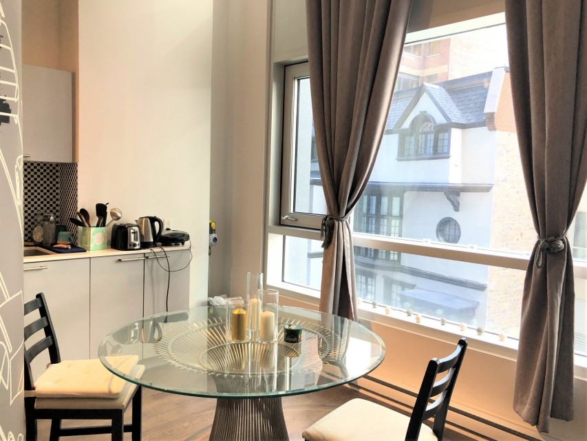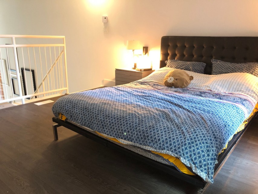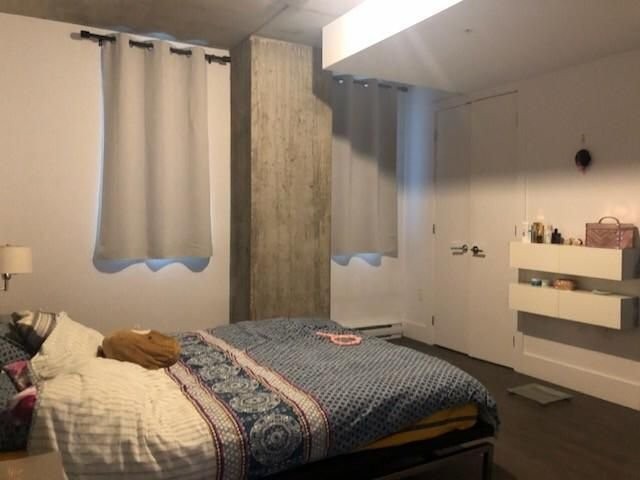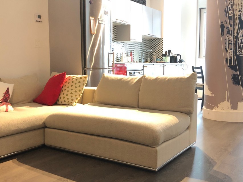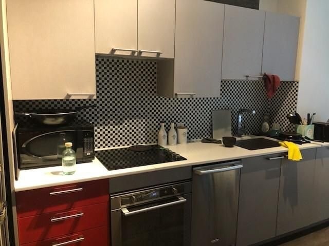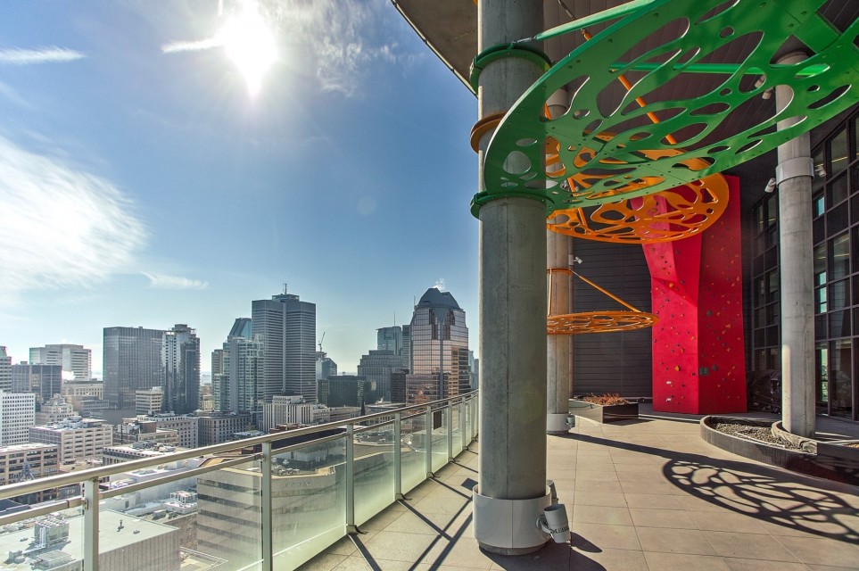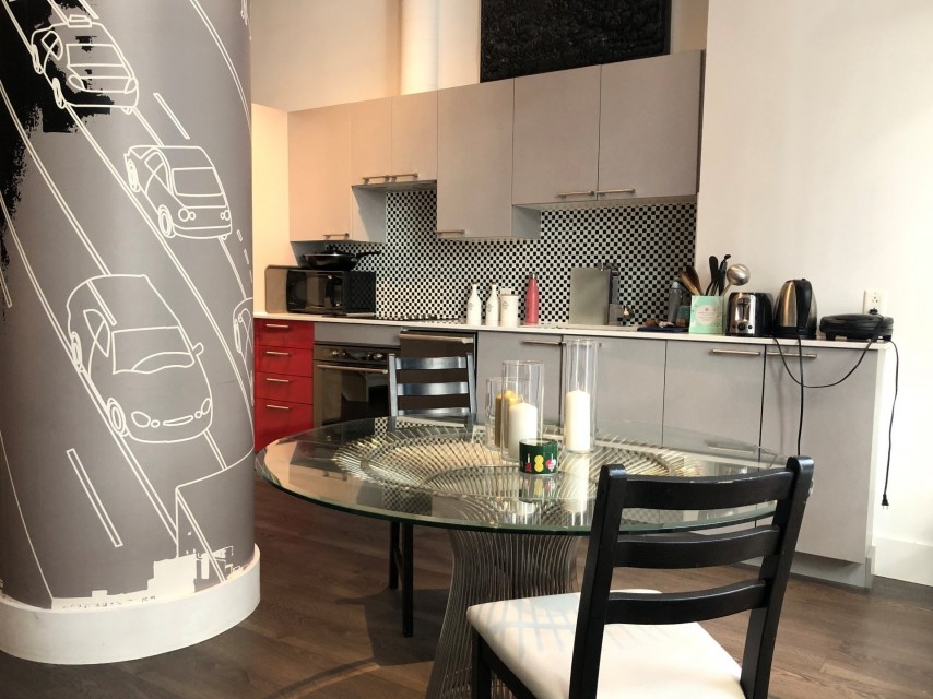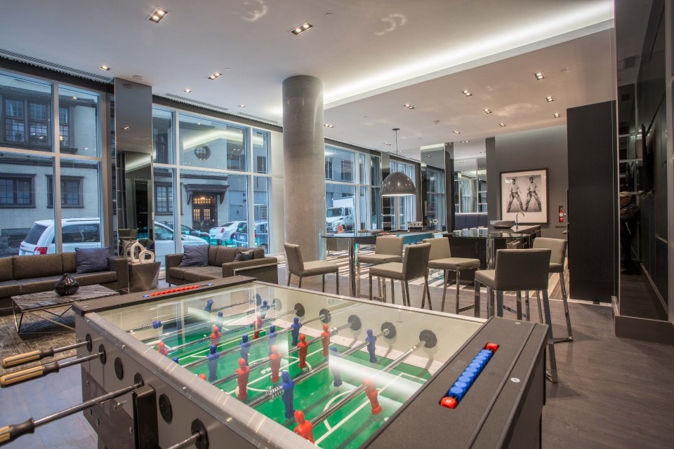 Le Peterson furnished Condo 2 flr Loft ! Spectacular and airy w/18 ft ceilings and enormous windows. Plenty of sunlight enters this ultra hip & spacious residence. Rent this condo and be close to McGill University, the new hospital, public transport and the Quartier des Spectacles with all its free outdoor performances! The tenant shall not touch the bikes suspended from the ceiling. Available August 01 2026. This condo is unique as it is a spacious and airy loft on 2 floors with a bedroom on the mezzanine and a large open area on the main level comprising living room, dining room, kitchen, bathroom and equipped laundry room. The ceiling is 18 feet high with large floor to ceiling windows letting in direct sunlight. the mezzanine level has windows also allowing light morning and afternoon. The kitchen is fully equipped with modern stainless steel appliances, quartz countertops and a large stainless sink. The luxurious Le Peterson building offers you 24/7 security, 3 high speed elevators, a guest suite for your overnight visitors, and FIVE (5) common spaces for socialising. On the ground floor there is 1) a party/games room with large screen television, Fuzball & pool tables, popcorn and Nespresso machines as well as a presentation kitchen for your events, 2) a quiet piano lounge, and 3) a bike repair and exercise room. The 28th floor has 4) an open skydeck with a 3 flr climbing wall, BBQ, and sunning area, and 5) a gym, situated on the south-east corner and surrounded by wrap-around floor to ceiling windows offering a grand view of the Entertainment District and the St Laurent River! Please note, no pets, no short term subletting, no smoking, no cannabis will be permitted in the apt. Tenant must acquire tenant insurance with civil liability before moving in, and pay the moving fees of the building. The furniture included shall be those seen during the visit, namely: Entrance closet Glass dining table L shaped sofa sofa Shelving unit in dining room Grey desk Tv and Tv stand affixed to the wall Queen Size Bed 2 bed-side tables with 2 lamps 2 bedroom shelves affixed to the wall bathroom mirror